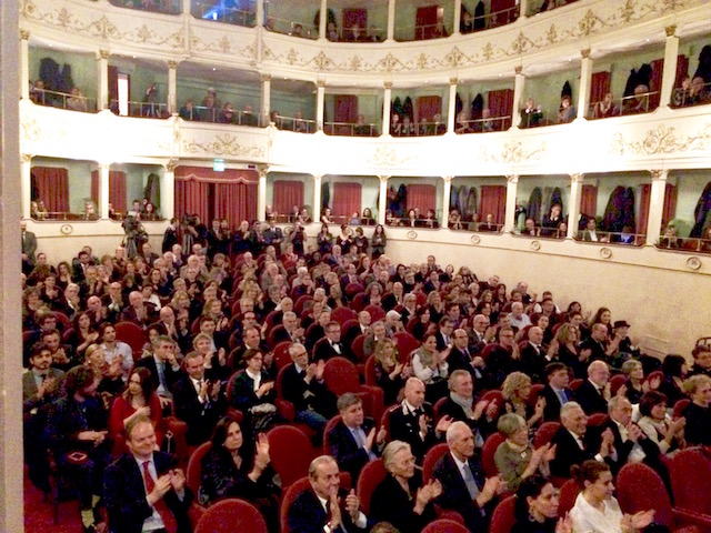Pubblico delle grandi occasioni (circa 400 i presenti) per il tutto esaurito della serata inaugurale che si è svolta stasera 8 gennaio. Tra i primi ad arrivare il sindaco Dario Nardella, la senatrice Rosa Maria Di Giorgi, il presidente del Consiglio Regionale Eugenio Giani, la vice presidente della Regione Monica Barni. In prima fila, con i coniugi Pagliai, c’erano anche il prefetto di Firenze Alessio Giuffrida e il comandante generale dell’Arma dei Carabinieri Tullio Del Sette, che durante la sua carriera è stato comandante regionale per la Toscana. Molte le personalità presenti: dall’avvocato generale della Repubblica Francesco D’Andrea al questore Raffaele Micillo, dal presidente del Tribunale di sorveglianza Antonietta Fiorillo al consigliere per la sicurezza del Comune di Firenze Giuseppe Quattrocchi (già procuratore capo della Repubblica), dal generale Aldo Visone comandante della Scuola Marescialli dei Carabinieri al generale dell’Aeronautica Stefano Fort comandante dell’Isma. Nelle prime file anche Franco Lucchesi, presidente dell’Opera di Santa Maria del Fiore che utilizzerà il Niccolini per farne – dalle 9 alle 17 di tutti i giorni – un nuovo punto del percorso museale tra i tesori artistici del centro di Firenze. Presenti anche i vertici di Ente Cassa di Risparmio di Firenze e di Banca CrFirenze. Per il Teatro della Toscana c’era Marco Giorgetti, direttore generale della fondazione che allargherà al Niccolini il circuito che comprende già il Teatro della Pergola. Tra gli artisti invitati anche l’attore Massimo Ghini, salutato da molti amici e ammiratori.