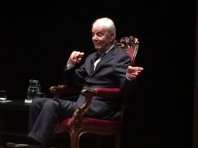 Poi gli occhi di tutti sono per Paolo Poli, che – a dispetto dei suoi 86 anni – tiene il palcoscenico per quasi un’ora, nella piece-intervista della giornalista Valentina Grazzini con la quale, con le battute e la lucidità di sempre, ripercorre le tappe della sua lunga carriera teatrale. Come per gioco: «quando si era ragazzi si giocava a nascondino, ad acchiappino. Stasera giocheremo a teatrino» dice divertendo il pubblico, ma divertendosi lui stesso per primo. Come quando, per sette minuti di fila, recita a memoria senza prendere fiato la poesia «I fiori» di Aldo Palazzeschi. Tutta ironia e doppi sensi.
