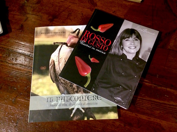 Nella serata di festa a Cortona per l’uscita di ‘Rosso di gusto’, è stato presentato anche il volume «Il Falconiere» scritto da Riccardo Baracchi, che con la moglie Silvia e il figlio Benedetto condivide la passione per la cucina, i prodotti della terra e l’arte dell’accoglienza. Titolari, tra l’altro, dell’omonimo relais «Il Falconiere» di Cortona (mèta ambita di personaggi dello spettacolo ma anche di chi privilegia riservatezza, esclusività e buona cucina) i Baracchi raccontano, come dice il sottotitolo del volume, «storie di vita, di caccia e di amicizia». Non un’autobiografia, ma uno spaccato di vita in cui tanti potranno riconoscersi, anche se non direttamente citati.