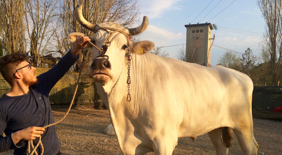 FOIANO DELLA CHIANA (Ar) – «Mi chiamo Sansone, sono alto 2 metri e peso 14 quintali. Quanti anni ho? Otto, un’età matura per un bove come me». Potrebbe cominciare così l’ «intervista» al gruppo di cinque bovi che la mattina di Pasqua 2016 arrivano a Firenze dalla Valdichiana per trainare fino a piazza del Duomo il «Brindellone» pieno di fuochi artificiali che attira migliaia di persone per il tradizionale «Scoppio del Carro» davanti al sagrato della cattedrale di Santa Maria del Fiore.
