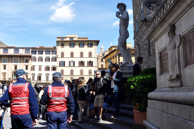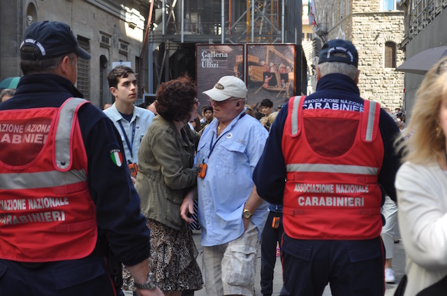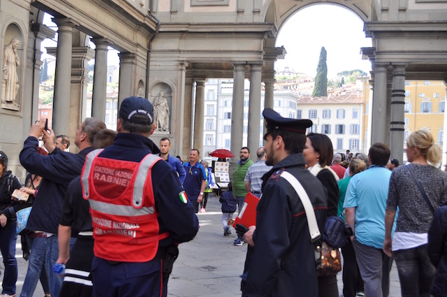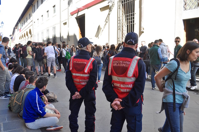 FIRENZE – Un occhio vigile in più su Firenze nella zona degli Uffizi e Galleria dell’Accademia. È quello dei volontari dell’Associazione Nazionale Carabinieri che da oggi 15 aprile hanno iniziato un’attività di «osservazione e segnalazione» (non parliamo di ronde) nella città di Firenze, in supporto alle forze dell’ordine quotidianamente impegnate nel controllo del territorio.