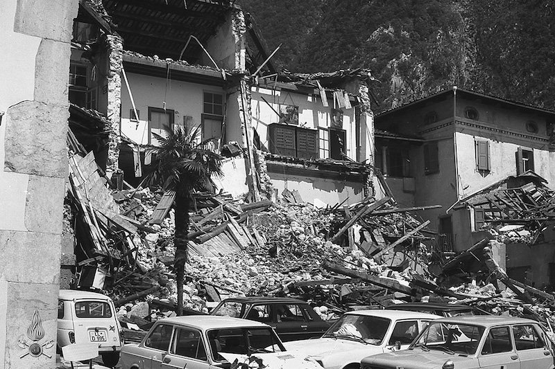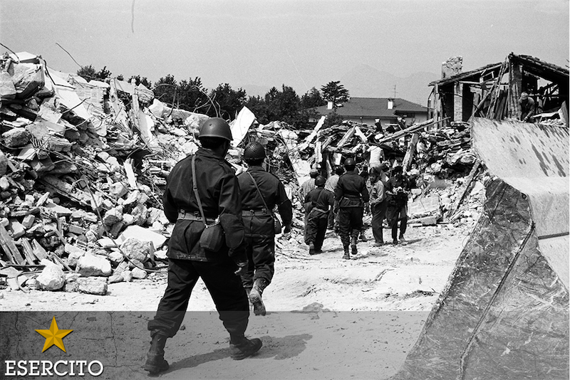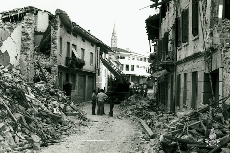 Ore 21.00 del 6 maggio 1976. Una scossa di magnitudo 6,5 Richter, con epicentro tra Gemona e Artegna in provincia di Udine, devasta un’area di oltre 5500 chilometri quadrati. I morti saranno 989, tra cui 32 militari dell’Esercito. A questi si aggiungeranno successivamente 4 Vigili del Fuoco morti in un incidente di elicottero durante i soccorsi. Decine di migliaia gli sfollati. Oltre 20 mila abitazioni distrutte, 80 mila quelle danneggiate.