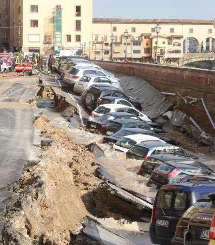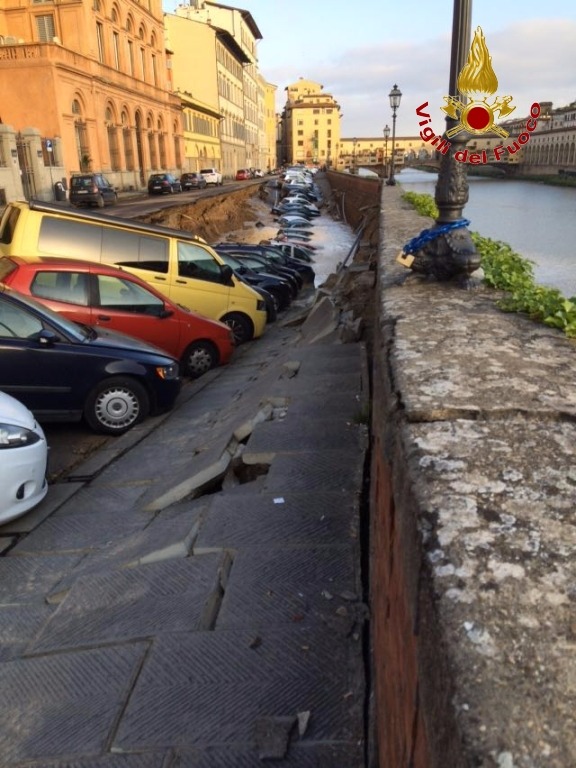 Firenze, sprofonda tratto di lungarno vicinissimo a Ponte Vecchio (Foto)