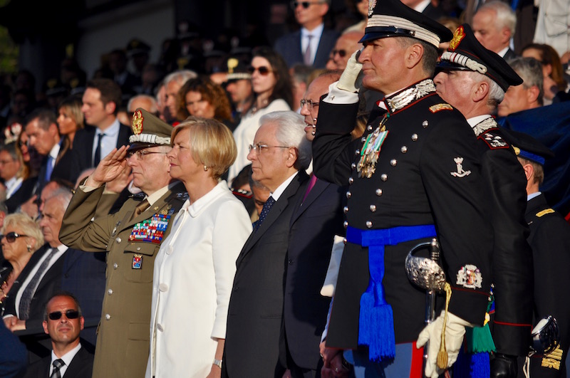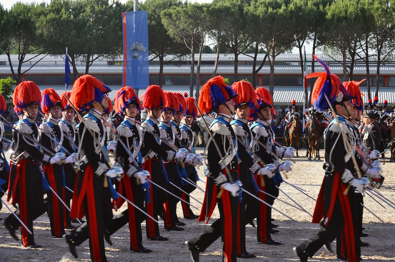 Prima del carosello, ìl saluto ai Carabinieri è stato rivolto, come di prassi, dal Ministro della Difesa Roberta Pinotti. Dopo aver rivolto un pensiero e un ringraziamento ai militari cui è stato concesso un riconoscimento per essersi particolarmente distinti in attività di servizio, il ministro ha sottolineato come «la natura militare dell’Arma dei Carabinieri ha consentito alla sua parte dedicata alle missioni all’estero di dimostrarsi all’altezza anche in situazioni difficili in territori non ancora pacificati e con zone di conflitto, come soprattutto in Afghanistan». «Altre storie, come quelle dei Comandanti di Stazione – ha poi detto il ministro Pinotti – testimoniano il contatto e l’ascolto, continuo e capillare, di concerto con la Magistratura, dei cittadini e delle loro istanze ed esigenze in materia di tutela dell’ordine e della legalità, in situazioni che vanno dalla microcriminalità alle infiltrazioni mafiose e camorristiche». Leggi qui il testo completo dell’intervento del Ministro Pinotti