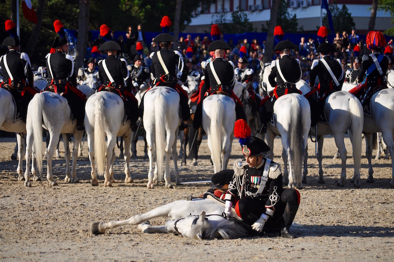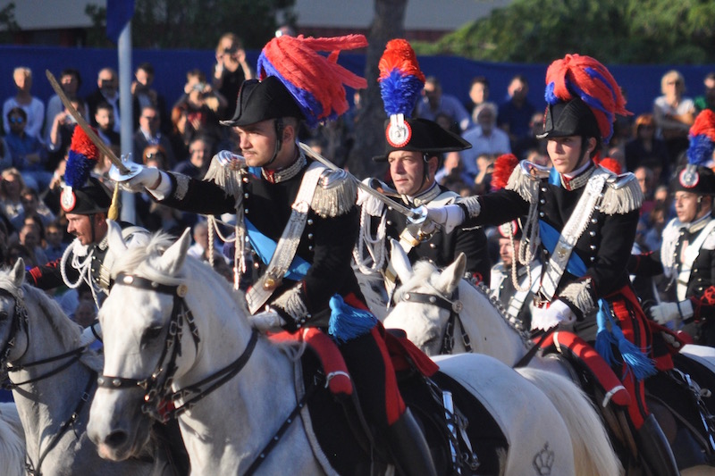 Spettacolo suggestivo presso la caserma «Salvo D’Acquisto» a Tor di Quinto a Roma, davanti al presidente della Repubblica Sergio Mattarella e a quello del Senato Pietro Grasso, le massime cariche dello Stato e i vertici delle Forze Armate e di Polizia. Tutti accolti dal Comandante Generale dei Carabinieri, generale Tullio Del Sette e dai massimi vertici dell’Arma.