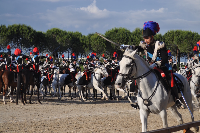 A un certo momento del carosello cavalli e cavalieri del 4° Reggimento hanno «disegnato» sul campo il numero 202 per celebrare gli oltre due secoli dalla fondazione dell’Arma. Momento immortalato dal drone che per tutta la cerimonia ha sorvolato la caserma, fino alla tradizionale «carica» che rievoca quella dei Carabinieri durante la battaglia di Pastrengo del 1848 durante la Prima guerra d’Indipendenza.