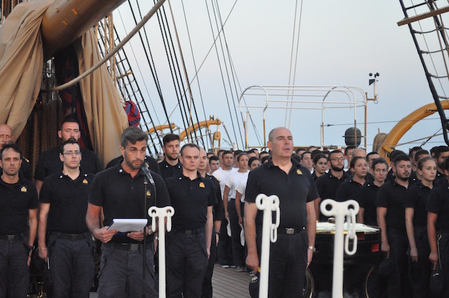 Su Nave Vespucci 2016 con gli allievi della Scuola Navale Morosini