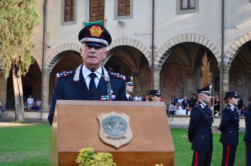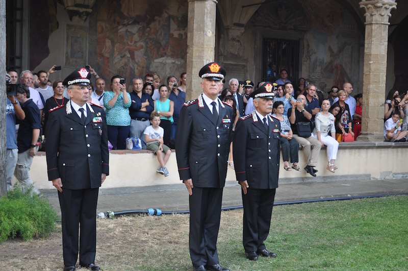 CHIUSURA – «Riconsegniamo al Comune di Firenze questo luogo storico, che abbiamo preservato per 96 anni, certi di aver adempiuto al meglio al compito di custodi» ha detto tra l’altro il Comandante Generale dell’Arma Tullio Del Sette nel suo saluto (a braccio) nel trecentesco Chiostro Grande di Santa Maria Novella, uno dei più suggestivi luoghi monumentali di Firenze, che l’Arma sta per lasciare, dopo esservi insediata il 5 gennaio 1920 con l’allora Scuola Allievi Sottufficiali Carabinieri. Da allora, in 96 anni, sono stati oltre 90.000 gli ufficiali (per un periodo limitato) e i sottufficiali che hanno «studiato» dentro queste mura.