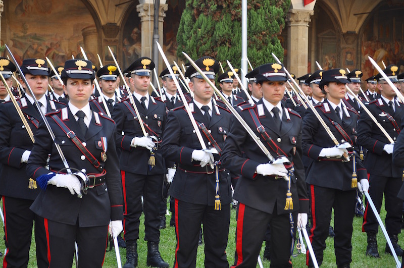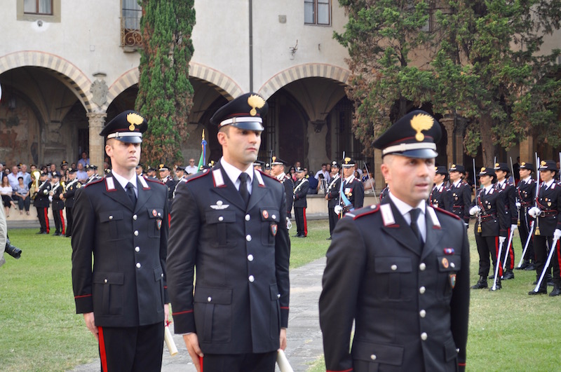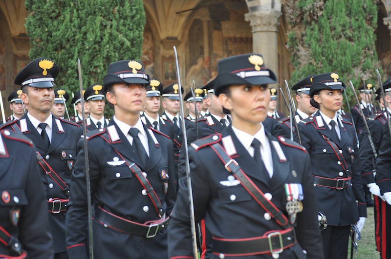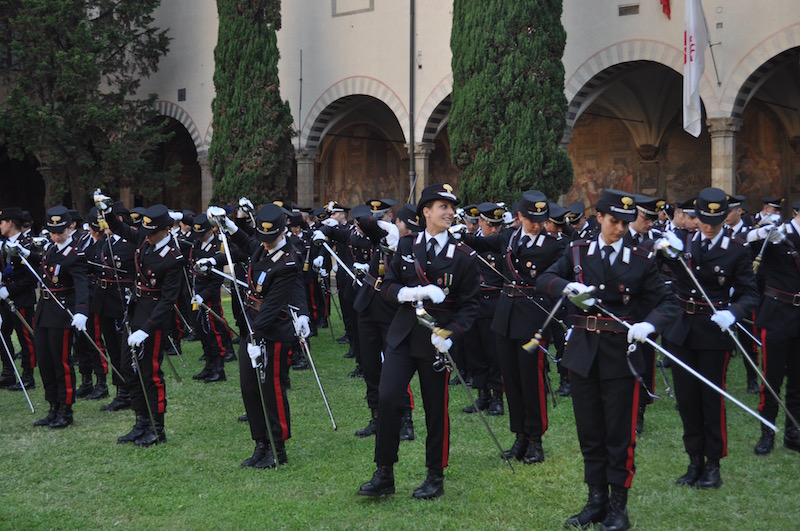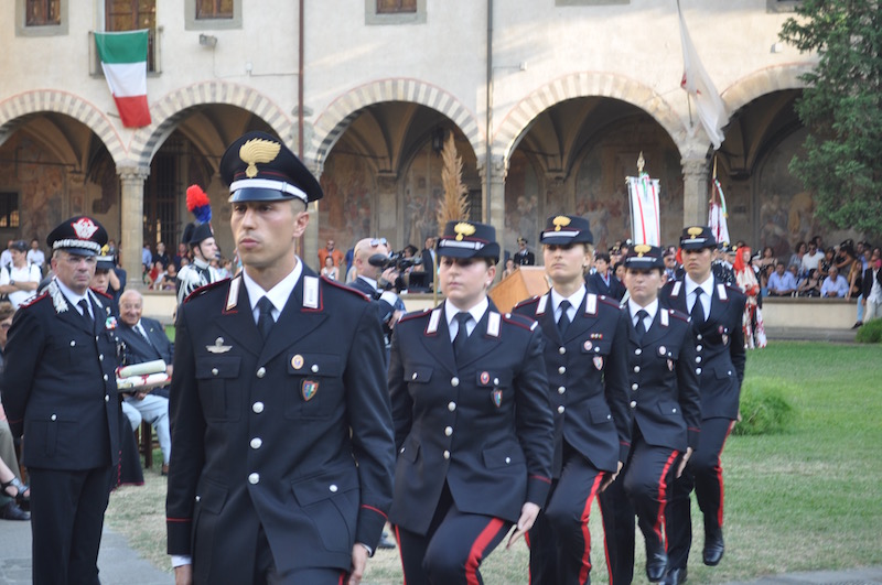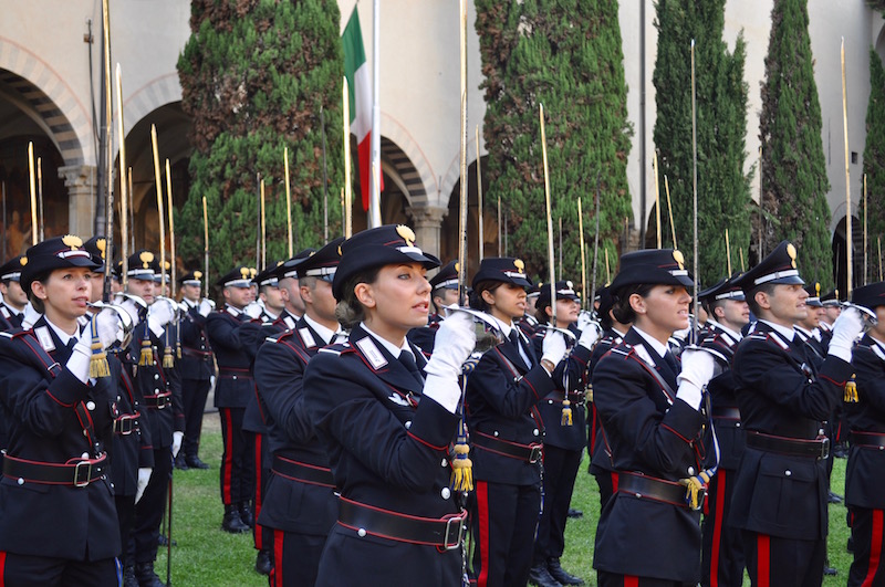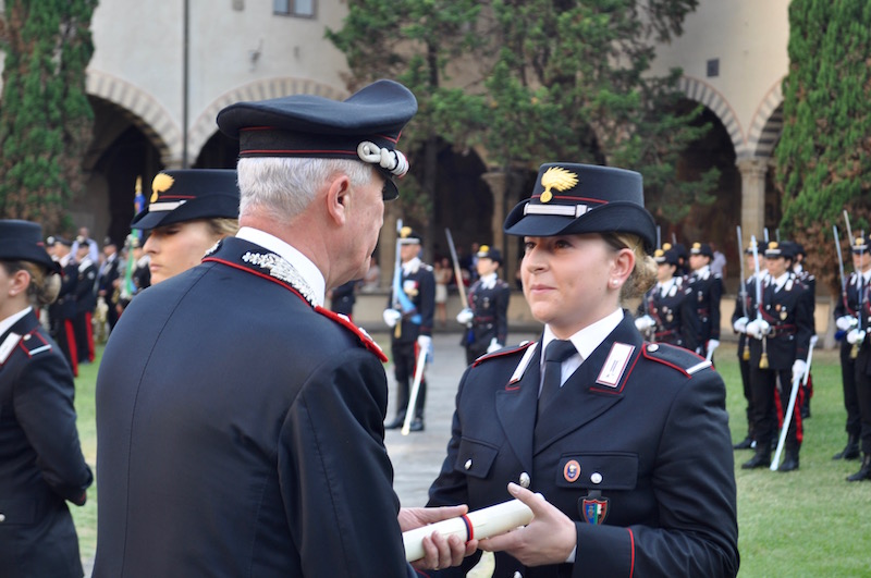 ALLIEVI – La cerimonia di oggi 27 luglio è coincisa con la fine del 3° corso triennale degli Allievi Marescialli, intitolato al maresciallo capo Luigi Di Bernardo, medaglia d’oro al Valor Militare alla memoria. Alla vedova, signora Maria Brognoli, i marescialli del corso hanno consegnato una targa ricordo. In tutto sono usciti oggi da Firenze 334 neo marescialli (oltre una sessantina le donne) che saranno a brevissimo destinati a incarichi operativi presso i reparti e i comandi territoriali dell’Arma. Di norma, la maggior parte di loro va in una stazione dei Carabinieri (in Italia ce ne sono oltre 4500) per affiancare il comandante. Dopo un successivo periodo diventano loro stessi i «comandanti di stazione» una delle figure chiave dell’organizzazione dell’Arma, a diretto contatto quotidiano con il territorio e i suoi abitanti.