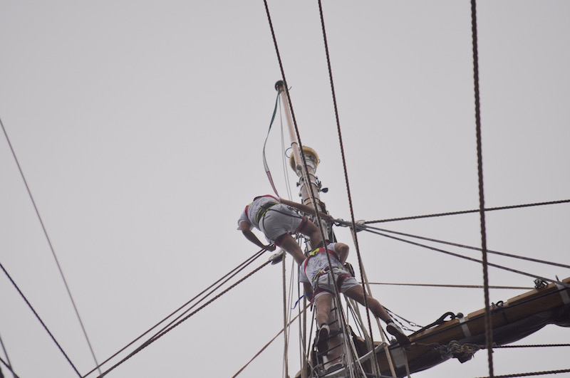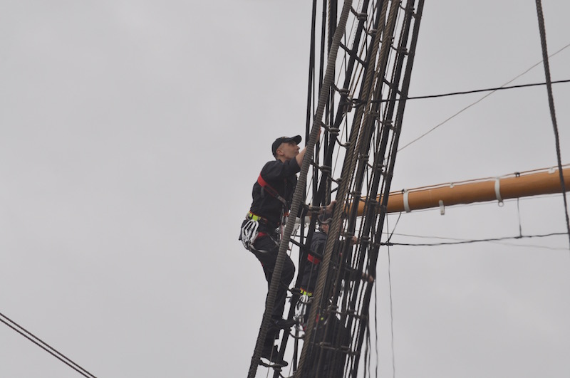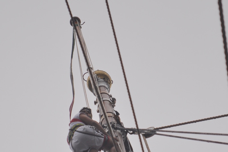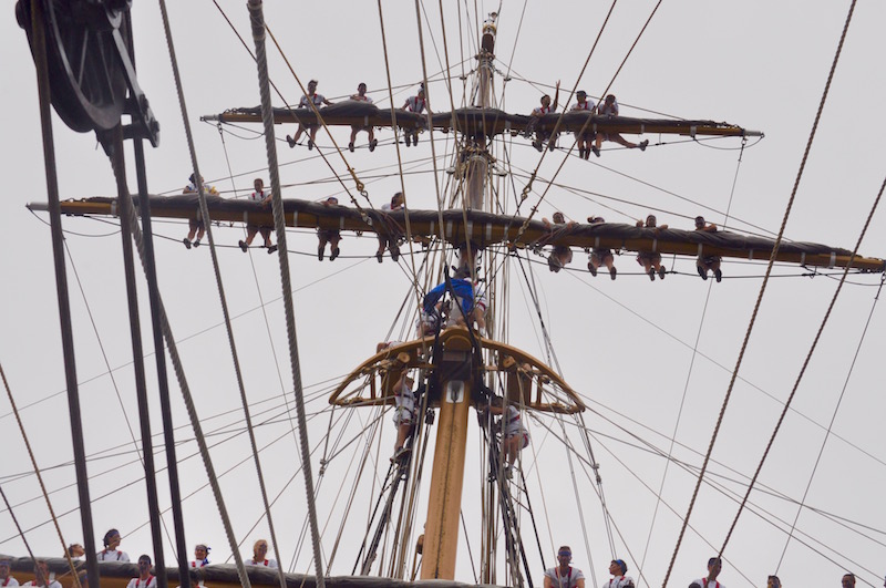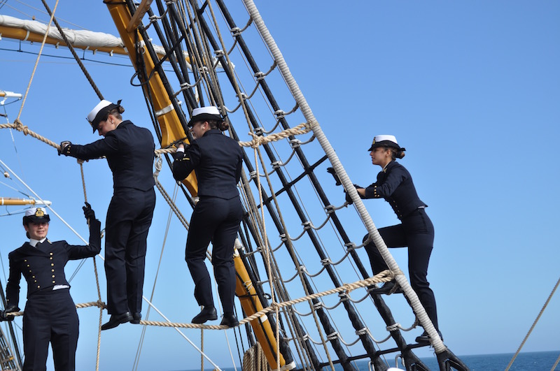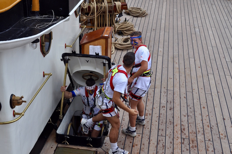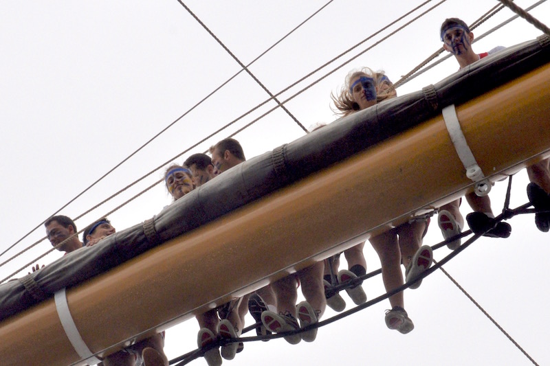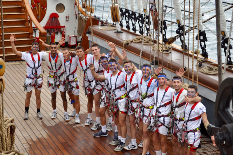 CONCLAVE – Per decidere il nome che salderà la loro appartenenza per tutta la vita militare (e anche dopo), i 100 allievi sono rimasti per due giorni e due notti in «conclave» in un locale non più grande di 100 metri quadrati. Un metro quadrato a testa, centimetro più centimetro meno. La stanchezza e la tensione si dissolvono però in un attimo a contatto con l’aria di mare e il vento a 20 nodi. Come veri e propri ragni i futuri ufficiali di Marina salgono rapidamente sull’albero più alto del Vespucci, sotto l’occhio vigile dei nocchieri della nave. È il momento tanto atteso fin dal primo giorno di Accademia, un anno fa esatto.