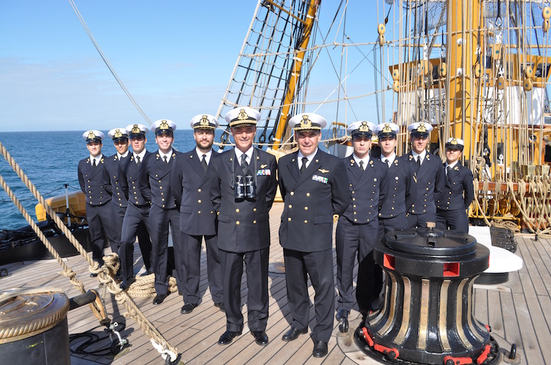 IN MARE – Sono le 17,22 bravo (ora dell’Europa Occidentale) di oggi 2 settembre 2016. Il battesimo del corso avviene nel mare del Nord, al largo delle coste di Danimarca e Germania. Il punto esatto: 55° 20’78” latitudine nord, 6° 13’04” longitudine est. È questo il momento in cui gli allievi. arrivati sui pennoni dell’albero di maestra di Nave Vespucci, sventolano la loro bandiera a oltre 50 metri dal ponte di coperta.