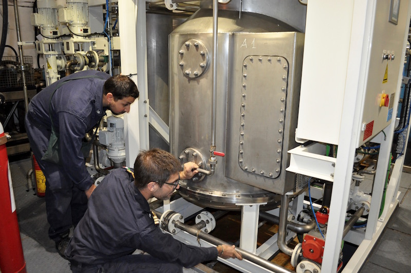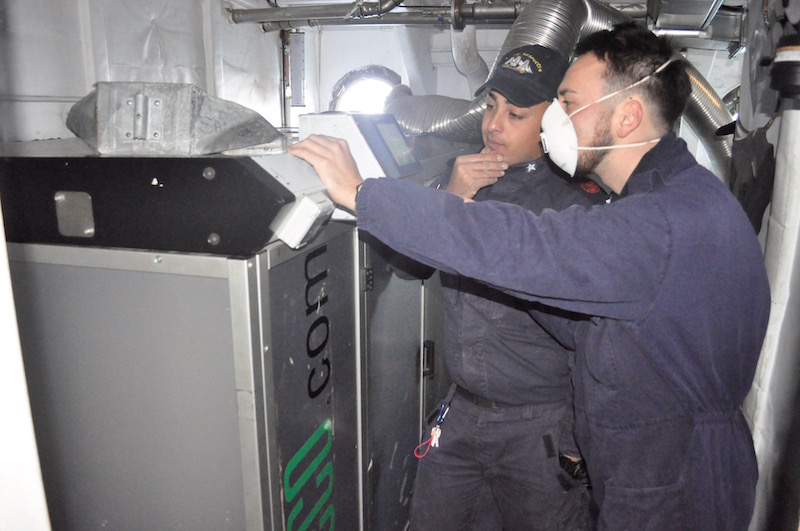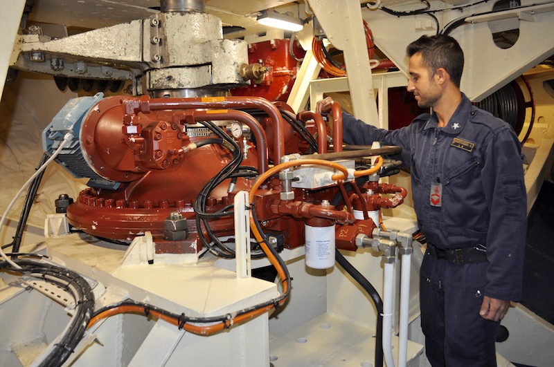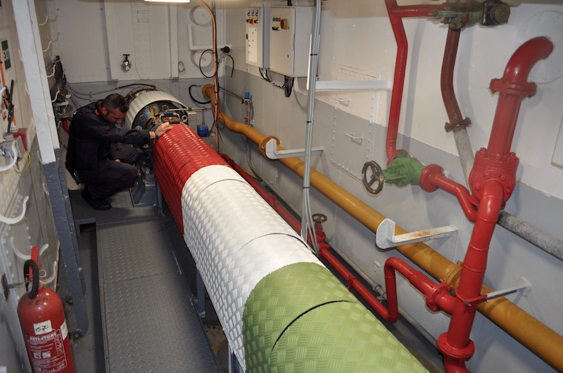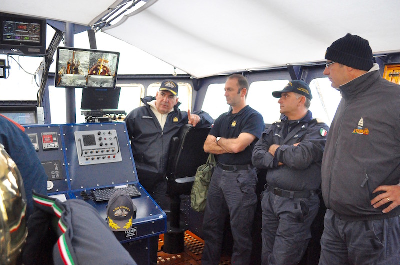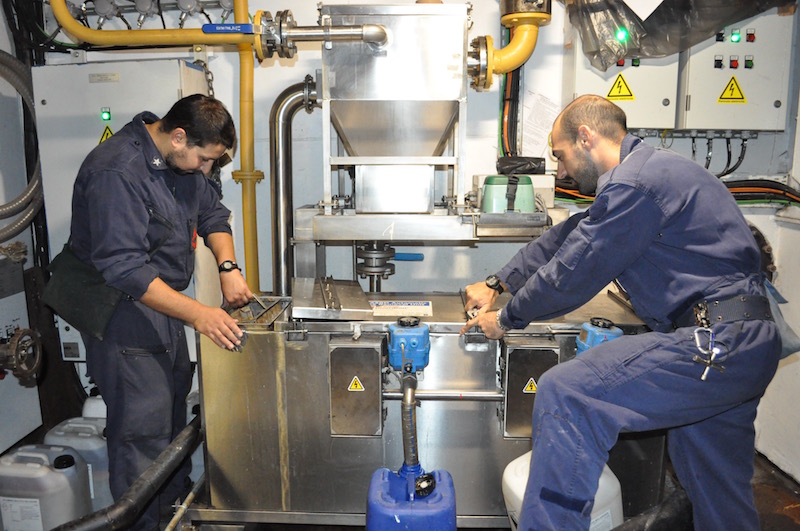Ma la novità principale sono le nuove macchine per il trattamento degli scarichi e liquami. Acque grigie e nere, nonché scarichi delle cucine, vengono «separati» in acqua pulita (che può finire in mare al largo) e fanghi che confluiscono in una cassa di raccolta, in attesa di essere di essere smaltiti nei porti di arrivo. Determinante – spiega il Tenente di Vascello Marco Berruti – anche la cosiddetta «trappola del grasso» che impedisce agli scarichi delle cucine di confluire nelle acque grigie. Le conseguenze di tutto questo? Un’autonomia di almeno 5 giorni (a pieno carico di persone a bordo) senza dover gettare neanche una goccia di acqua pur riciclata in mare. E la possibilità di navigare pertanto anche in zone protette – ad esempio la baia di Portofino – senza rischi di alcun genere per l’ambiente marino.