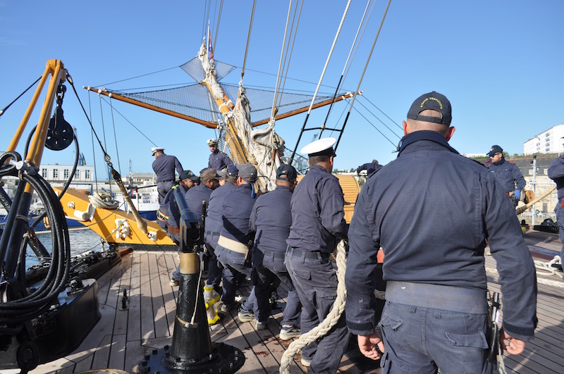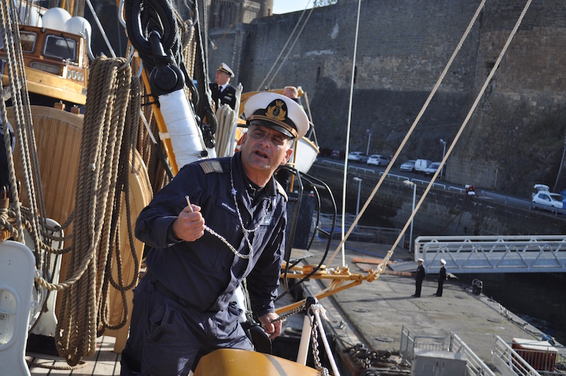 Ma Brest vuol dire anche la sede dell’Accademia Navale della Marina francese, che i nostri cadetti italiani visiteranno per confrontare reciproche esperienze. I loro «colleghi» francesi non hanno una nave come il Vespucci. Le loro prime esperienze in mare sono su golette e barche a vela più piccole per uscite di breve durata, mentre la vera «campagna» addestrativa si svolge – per circa sei mesi – al termine dei tre anni di Accademia, a bordo di una nave «grigia», una delle navi militari ancora in servizio.