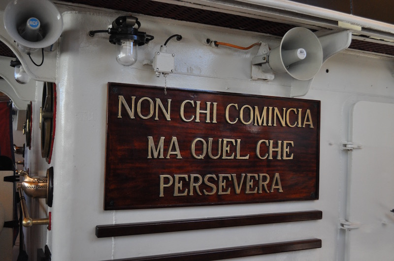 A bordo del Vespucci intanto l’attività non conosce soste. La stanchezza e qualche giorno di mare non proprio «olio» non hanno minimamente intaccato la resistenza degli allievi del Corso Ateires. D’altra parte lo ripete spesso anche uno dei loro sottufficiali, il 1° maresciallo Nicola Di Bitetto: «Quando il mare è calmo assai, siamo tutti marinai». Che detto in perfetto napoletano diventa quasi una poesia, ma allo stesso tempo un monito per riuscire vincenti nel confronto con la vita di mare. Ne è convinta, come tutti, un’allieva ventenne che poco prima di mezzanotte è di guardia sull’aletta di dritta. Sveglia come se si fosse alzata da poco, scruta il mare da quasi due ore. «Non soffro il mare e comunque mi fanno tanta compagnia le stelle». Comincia a indicarle per nome, quasi come ripassare mentalmente le lezioni del suo professore di navigazione. La luna quasi «sciupa» con la sua luce il ripasso di astronomia, ma lo spettacolo è una di quelle cartoline che resteranno a lungo nei cuori di questi ragazzi di 20 anni, davvero con una marcia in più.