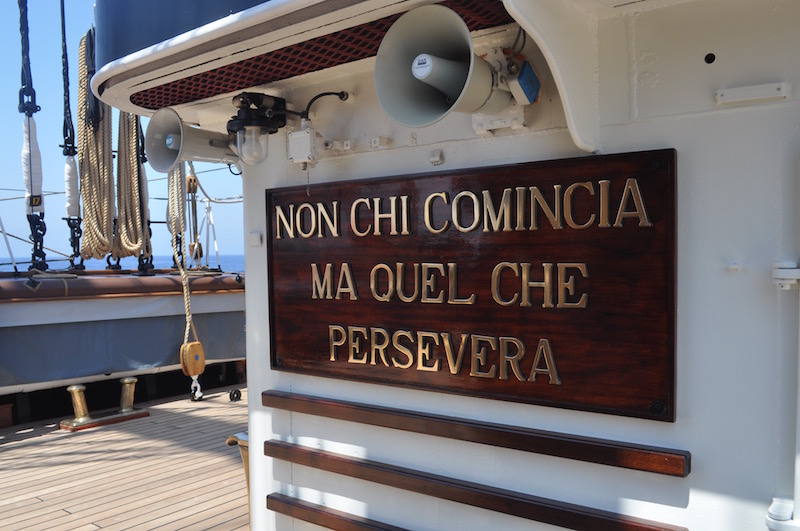 «Per me il comando del Vespucci – dice il comandante Patruno – ha sempre rappresentato un faro lontano. Una meta da raggiungere, uno scopo e un traguardo professionale e personale. Ho sempre creduto che le nostre navi a vela fossero uno strumento di formazione del personale da considerare strategico per la Forza Armata. Un incredibile punto di forza che coniuga la tradizione con l’innovazione, che esalta lo spirito di corpo e rinforza i sentimenti di attaccamento e appartenenza». Citando poi un suo illustre precedessore al comando del Vespucci, l’ammiraglio Agostino Straulino, Patruno ricorda che «se saprà navigare a vela, l’Allievo possiederà quasi tutte le qualità indispensabili per diventare un buon Ufficiale». (Leggi qui tutto l’intervento del comandante Patruno)