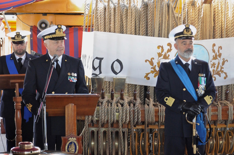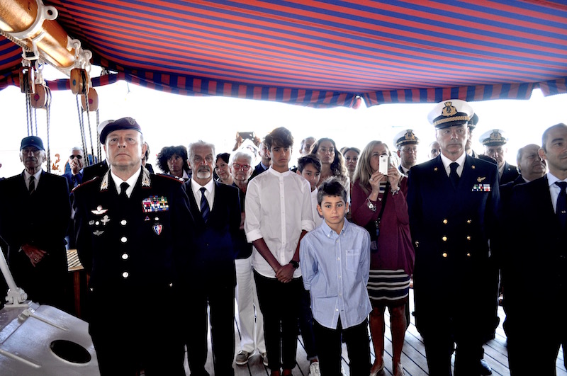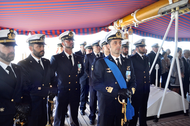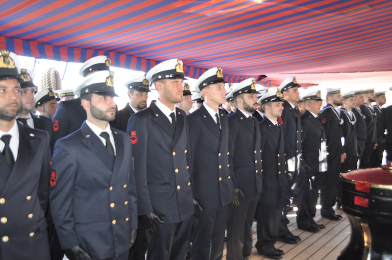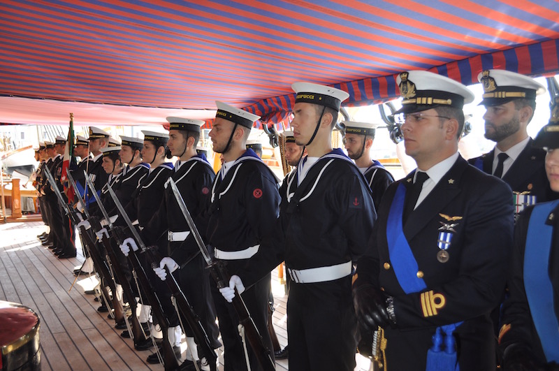 Tra i presenti anche il contrammiraglio Pierpaolo Ribuffo, comandante dell’Accademia di Livorno, il generale dei Carabinieri Sebastiano Comitini capo della 2ª Brigata Mobile dell’Arma, il neo comandante provinciale dei Carabinieri di Livorno colonnello Alessandro Magro, il capitano di vascello Vincenzo Di Marco comandante della Direzione marittima di Livorno della Guardia Costiera. Il reparto di formazione di ufficiali, sottufficiali e marinai del Vespucci è comandato dal capitano di fregata Paolo Pedico, neo comandante in 2ª imbarcato sull’unità da poco meno di un mese.