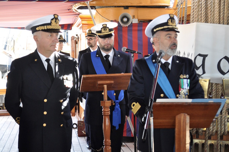 Nel suo intervento, letto da un testo scritto («per stare nei tempi ma soprattutto per non farmi prendere troppo dalle emozioni»), il comandante Pacifici ripercorre quattro anni di attività a bordo «di sole e di sale, di vento e di mare». Ma – osserva – «non ci sono pagine a sufficienza per poter descrivere il numero e la intensità dei sentimenti, rapporti interpersonali e legami emotivi che si sono instaurati a bordo tra ognuno di noi». Un ricordo anche per il giovane nocchiere Alessandro Nasta, vittima di una caduta mortale nel maggio 2012 da un albero del Vespucci. «Ha cambiato le nostre vite. Sono certo – dice Pacifici – che ci osserva sempre e ci ha dato e ci dà nuovi stimoli per migliorarci». (Leggi qui tutto l’intervento del comandante Pacifici)