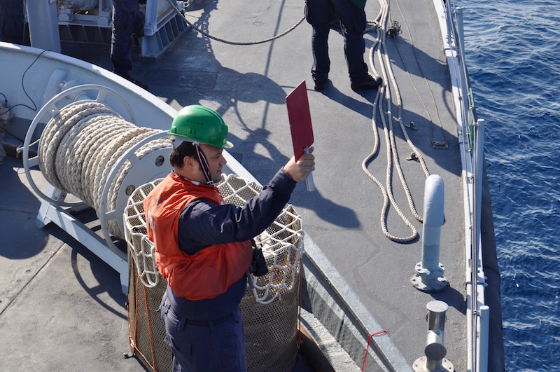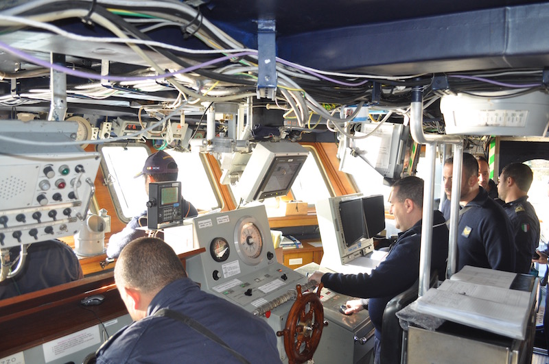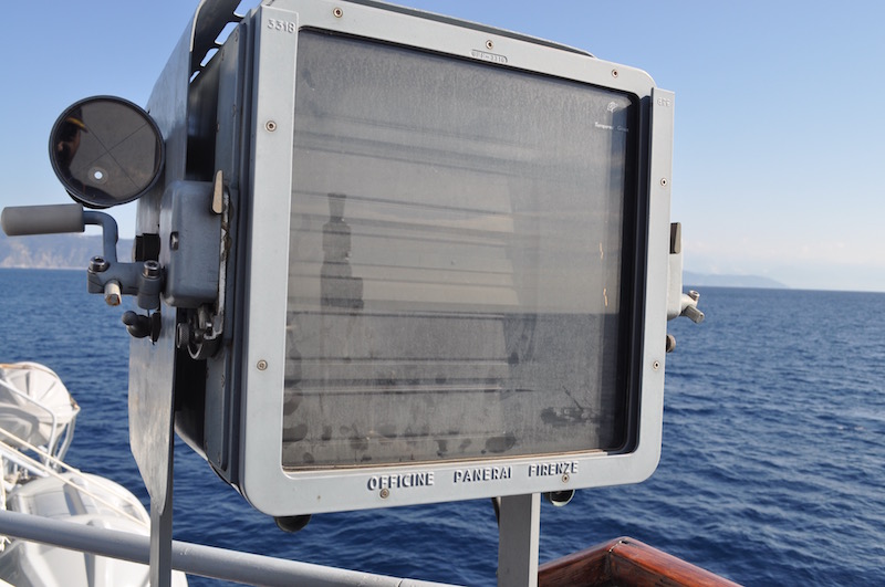 Tutto l’equipaggio del Milazzo, comandato dal tenente di vascello Francesco Giangarrà, conosce alla perfezione i propri compiti. Messaggi e segnali con la Evropi vengono svolti con sistemi tradizionali, come le comunicazioni ottiche e quelle luminose (i «lampi di luce») attraverso i celebri segnalatori Panerai. Per la radio e internet c’è sempre tempo.