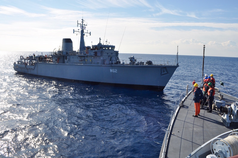 Se ne parla a bordo del cacciamine 5552 «Milazzo» della Marina militare, appena salpato da La Spezia mercoledì 12 ottobre. L’ordine è di raggiungere al largo il cacciamine greco Hs Evropi, il cui equipaggio sta effettuando un periodo di addestramento presso Maricendrag, il Centro addestramento guerra di mine della Marina militare. È una delle eccellenze della difesa navale non solo per l’Italia, ma sempre più spesso per molte nazioni estere che mandano i propri equipaggi a istruirsi o ad aggiornarsi in Italia. Dalla Svezia alla Francia, dalla Spagna alla Grecia.