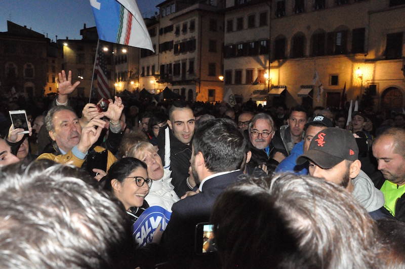 Una piazza come da tempo non si vedevano a Firenze. L’ultima volta era stato per il comizio di chiusura di Matteo Renzi in piazza della Signoria alla campagna elettorale per le Europee 2014. In precedenza c’erano stati comizi affollati di Berlusconi ma all’interno del Palazzo dei Congressi. Firenze era insomma in astinenza di comizi di piazza. E l’elettorato di centro destra in modo particolare.