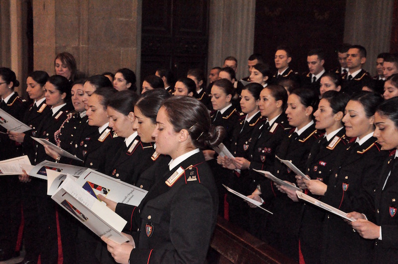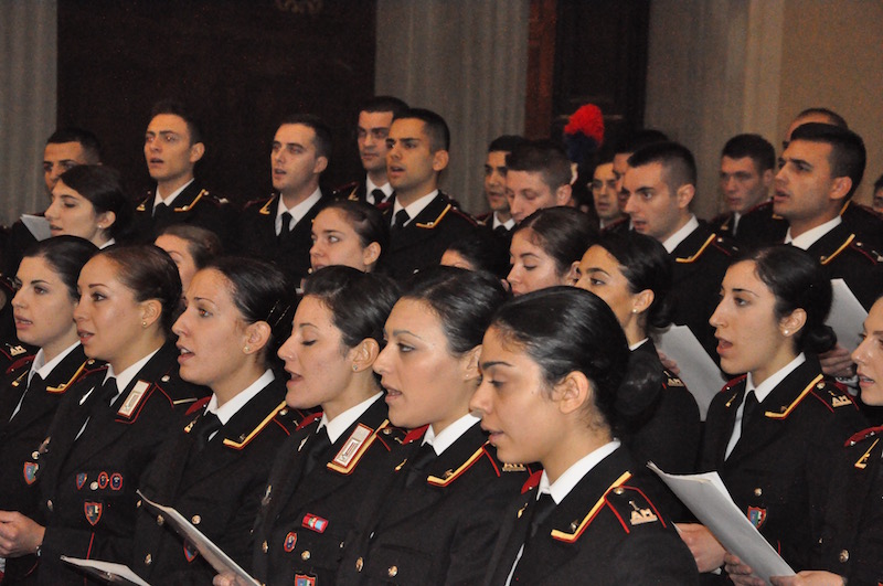 Suggestiva cornice alla cerimonia sono state le esecuzioni della Fanfara e del Coro della Scuola Marescialli, quest’ultimo formato da allievi di tutti i tre anni del corso di formazione presso l’istituto fiorentino. Particolarmente sentita l’esecuzione dell’Inno alla Virgo Fidelis