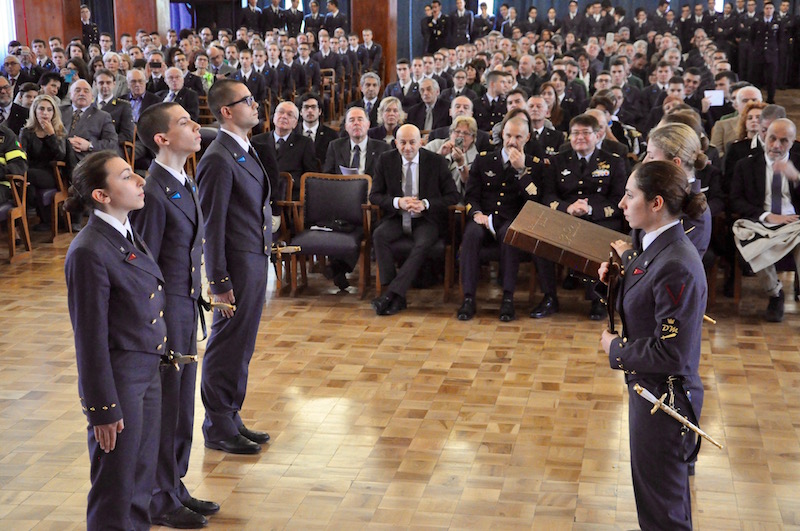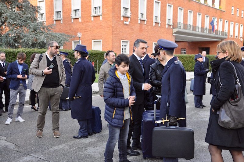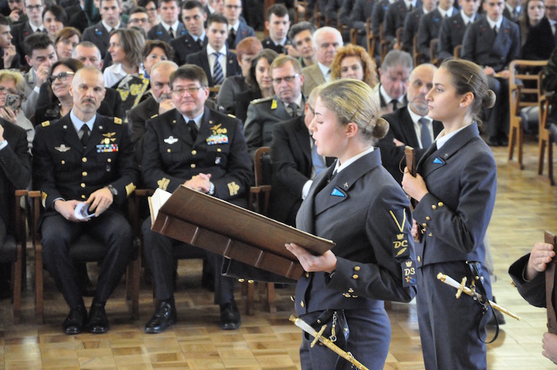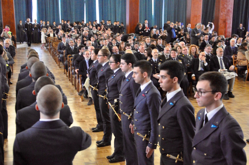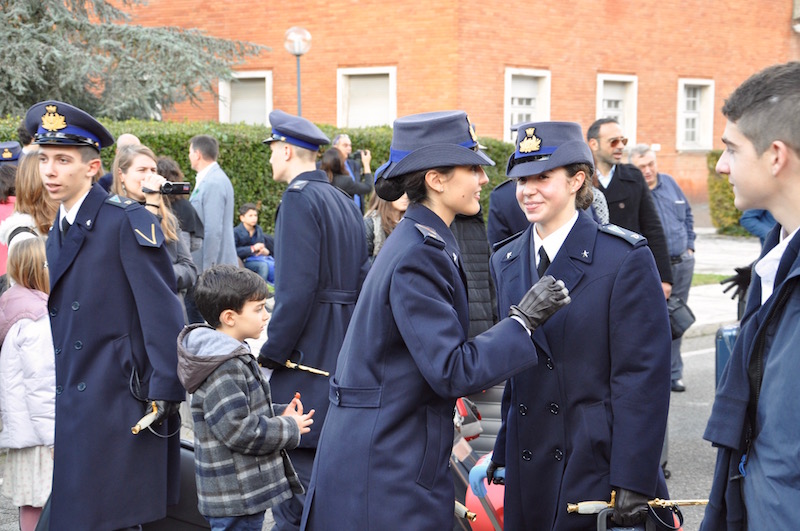 Alla cerimonia dello spadino, che simbolicamente gli allievi del 2° anno hanno consegnato alle «matricole» del 1° anno dopo la benedizione del cappellano Don Antonino Pozzo, erano presenti le massime autorità fiorentine guidate dal prefetto Alessio Giuffrida. Sono state accolte dal generale Stefano Fort, comandante dell’Istituto di Scienze Militari Aeronautiche e dal colonnello Michele Buccolo, comandante e dirigente scolastico della Douhet.