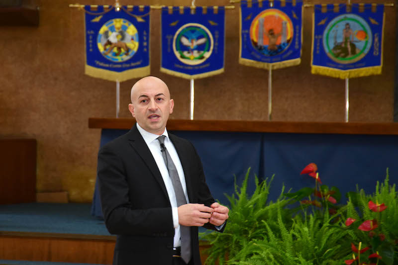 La prolusione ufficiale è stata tenuta da un’ospite d’eccezione. È il dottor Massimo Tammaro. Oggi dirigente della Ferrari a Maranello. Ma fino al 2010 è stato comandante della Frecce Tricolori, la Pattuglia Acrobatica Nazionale, dove era entrato dodici anni prima. «Non sono qui come professore – ha esordito Tammaro rivolgendosi direttamente agli allievi della Douhet – né mi sento uno scienziato. L’esperienza mi ha insegnato a non considerare nessuno inferiore a me. Da soli non si vince nessuna battaglia. Occorre anche saper imparare dagli errori, propri e degli altri, per migliorare e crescere ogni giorno. La carta vincente? Saper coniugare umiltà e orgoglio di appartenenza ad una squadra, ad un’organizzazione dove ognuno è fondamentale».