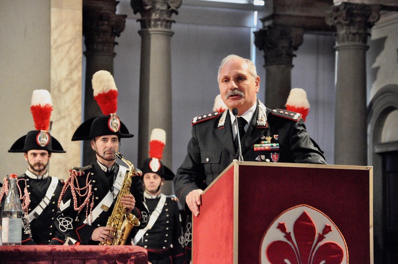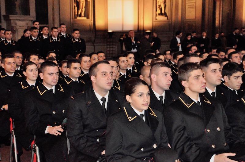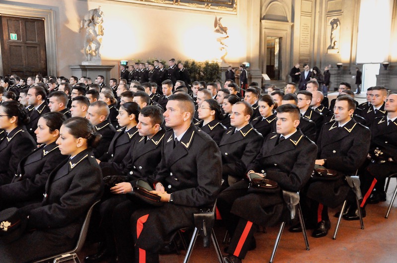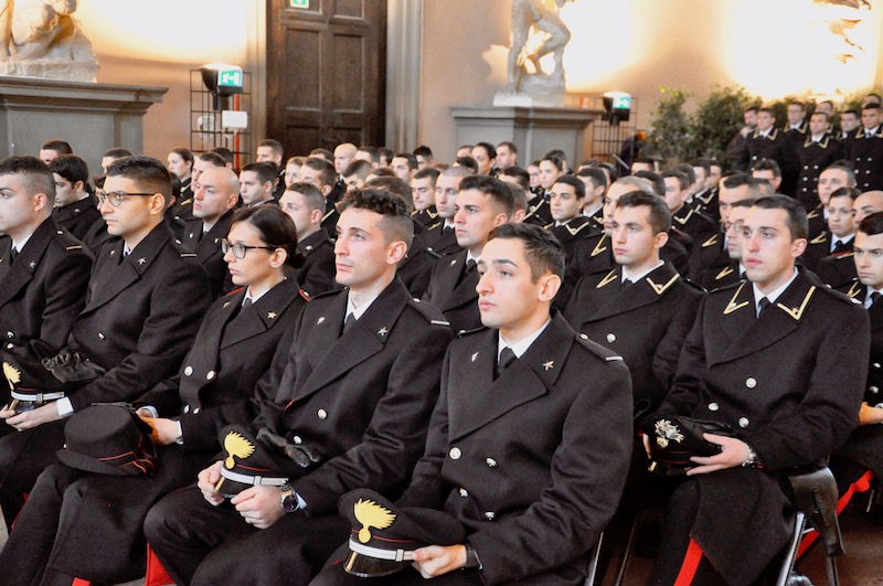 FIRENZE – «Formarsi oltre il proprio dovere, imparare a fare proprio il bagaglio di professionalità e umanità indispensabili nel quotidiano contatto con la gente». Con queste parole il generale Antonio Ricciardi, vice comandante generale dei Carabinieri, si è rivolto ai giovani allievi che frequentano i corsi triennali presso la Scuola Marescialli Carabinieri di Firenze Castello. Un’occasione importante quella di oggi 14 dicembre, per l’inaugurazione dell’anno accademico dell’istituto di formazione dell’Arma, dichiarato aperto dallo stesso generale Ricciardi e dove studiano oltre 1200 allievi. La maggior parte di loro, quando uscirà dalla Scuola, sarà destinata a comandare una delle quasi 5000 stazioni dell’Arma capillarmente presenti sul territorio.