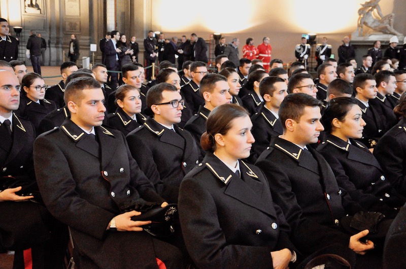 La cornice della cerimonia di oggi, come consuetudine da qualche anno, è stato il Salone dei Cinquecento in Palazzo Vecchio dove il via è stato dato dall’Inno di Mameli eseguito dalla Fanfara della Scuola Marescialli. Il benvenuto è stato dato da sindaco di Firenze Dario Nardella, che ha tra l’altro sottolineato come la presenza nell’area fiorentina di un istituto come la Scuola Marescialli sia per la città «un patrimonio straordinario, dove si forma la futura classe dirigente del paese». Un ringraziamento alla città e un costante impegno di vicinanza e prossimità verso i suoi abitanti è stato espresso dal generale Gianfranco Cavallo, che ha assunto il comando della Scuola Marescialli il 14 ottobre scorso.