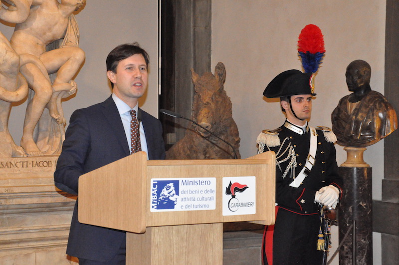La meritoria opera dei «Carabinieri dell’arte» è stata sottolineata dal generale Del Sette nel suo intervento, che ha definito i circa 300 militari che operano a livello nazionale in questa specialità «veri e propri custodi dell’identità culturale del nostro paese». Un’opera attenta e silenziosa svolta quotidianamente dagli uomini e dalle donne del Comando tutela del patrimonio culturale. «Una preparazione e una professionalità che in molti all’estero ci invidiano, soprattutto negli Stati Uniti» ha aggiunto il sindaco di Firenze Dario Nardella nel suo saluto, unitamente a quello del direttore delle Gallerie degli Uffizi Eike D. Schmidt.