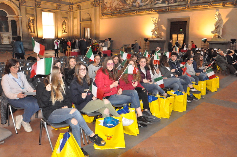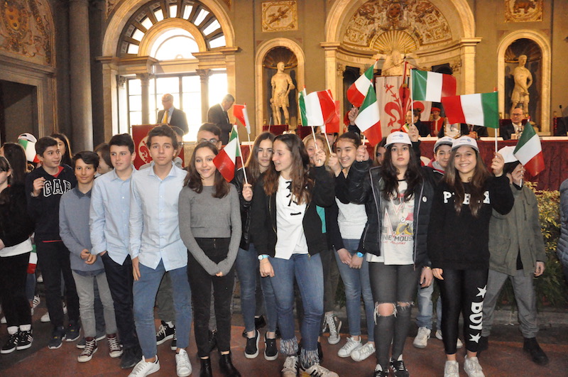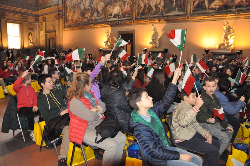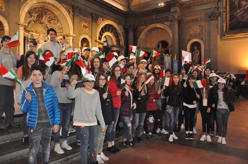FIRENZE – La Bandiera italiana e oltre 250 giovanissimi alunni delle scuole fiorentine, desiderosi di conoscere la storia del loro paese. Questi i protagonisti della «Festa della Bandiera» edizione 2017, promossa come ormai tradizione dai Rotary Club fiorentini in collaborazione con il Comune di Firenze e l’Ufficio Scolastico Regionale per la Toscana.