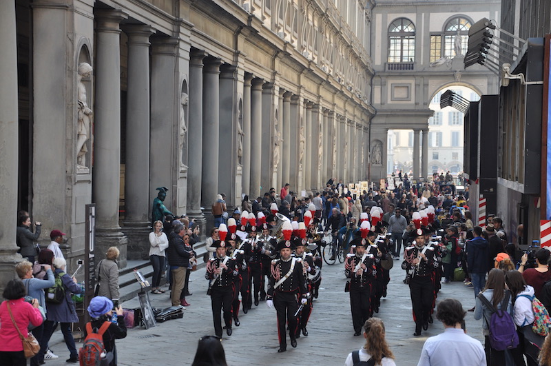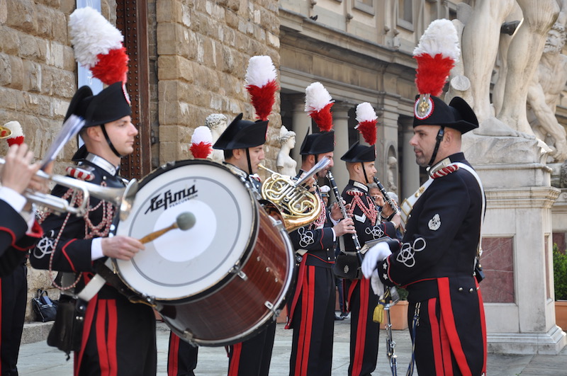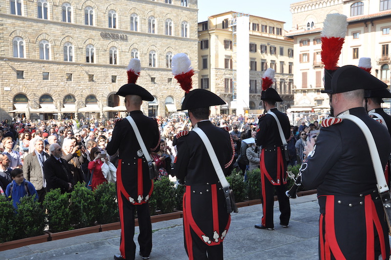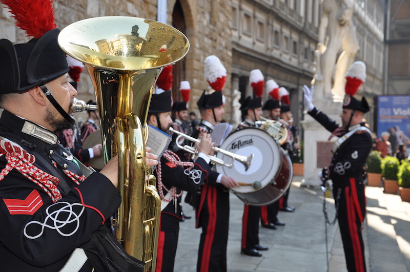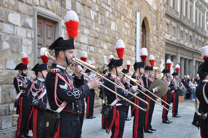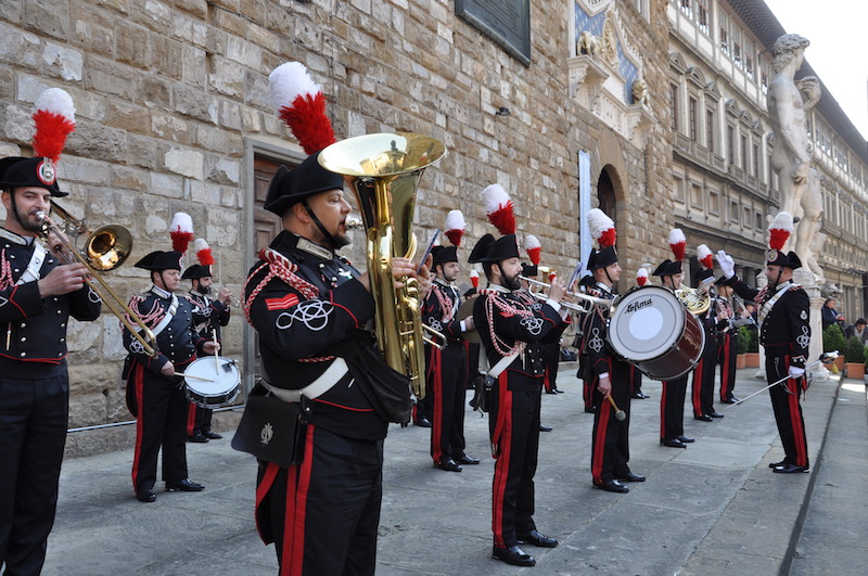 Applauditissima da fiorentini e turisti, al termine della manifestazione, l’esibizione della Fanfara della Scuola Marescialli dei Carabinieri sull’arengario di Palazzo Vecchio, diretta dal maresciallo maestro Ennio Robbio.