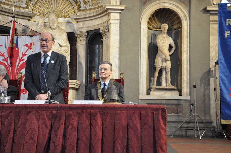 Il coro dei giovani allievi della Scuola Militare Aeronautica Giulio Douhet (che frequentano il liceo classico e gli ultimi tre anni dello scientifico) ha aperto la giornata intonando solennemente l’Inno di Mameli, a lungo applaudito dalla platea dove sventolavano molte bandierine tricolori. Tra i presenti il prefetto di Firenze Alessio Giuffrida che, nel ricordare il significato della ricorrenza del 17 marzo, ha molto apprezzato l’iniziativa comune tra un’associazione della società civile come il Rotary International ed enti pubblici come Comune di Firenze e Ufficio Scolastico Regionale.