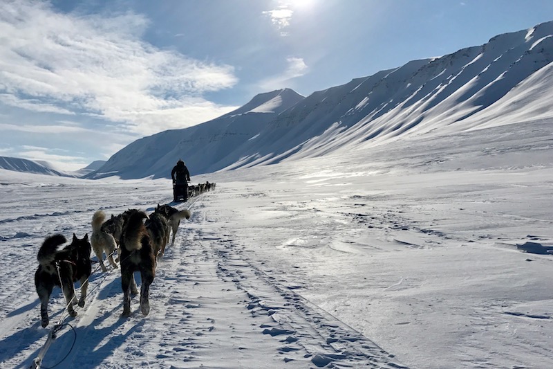 Martin, la nostra guida, ricorda il nome di ognuno di questi cani, soprattutto delle coppie di testa che devono guidare l’intera squadra. Trentadue anni, olandese, Martin ha cominciato in Canada come guida di safari proprio con cani da slitta. Si è trasferito alle Svalbard all’inizio del 2017, seguendo il consiglio di un amico che fa lo stesso mestiere. La capanna dove ha preso alloggio non ha indirizzo. «Non ho acqua corrente, ma il mio datore di lavoro mi paga l’abbonamento in palestra, così posso fare anche la doccia». La palestra è a Longyearbyen, dove con una motoslitta si può arrivare in ‘appena’ mezz’ora sfruttando l’«autostrada», cioè il letto del fiume ancora ben ghiacciato.