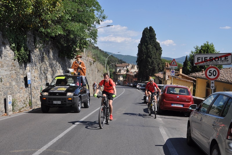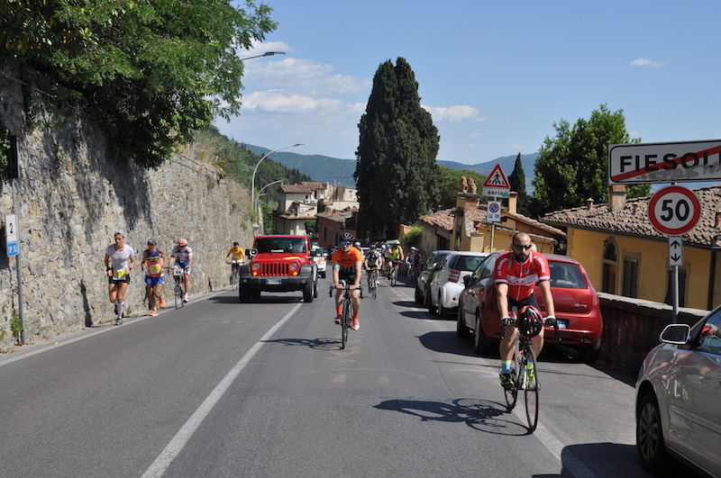 Pubblichiamo, in esclusiva, le foto del passaggio degli atleti sull’ultimo tratto della salita verso Fiesole. Da lì puntano verso il Mugello, quindi l’Appennino al passo della Colla, per arrivare a Faenza in piazza del Popolo, nella notte tra sabato 27 e domenica 28.