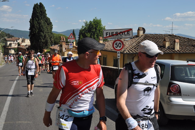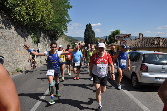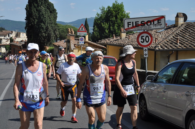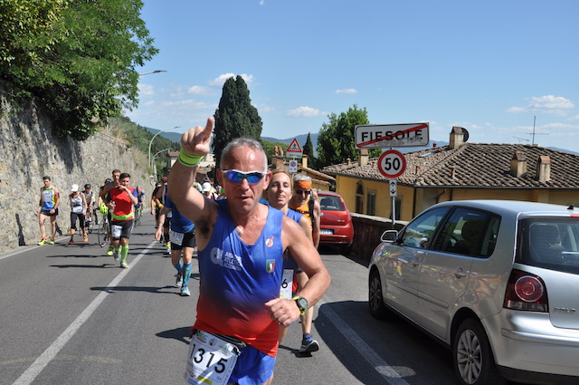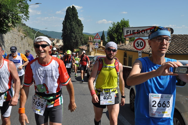Fin dall’inizio della tra i primi si è subito piazzato Giorgio Calcaterra, con il pettorale numero 1 e da ben 11 edizioni campione indiscusso della gara. Quest’anno tenta di raggiungere il record della dozzina. È transitato da Fiesole in seconda posizione alle 15,39.