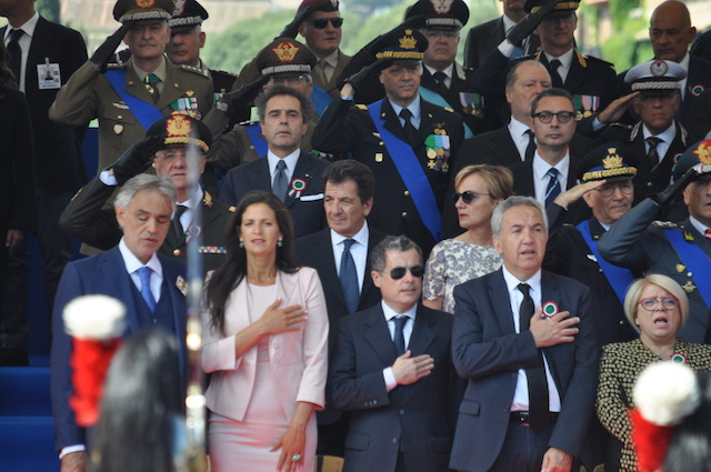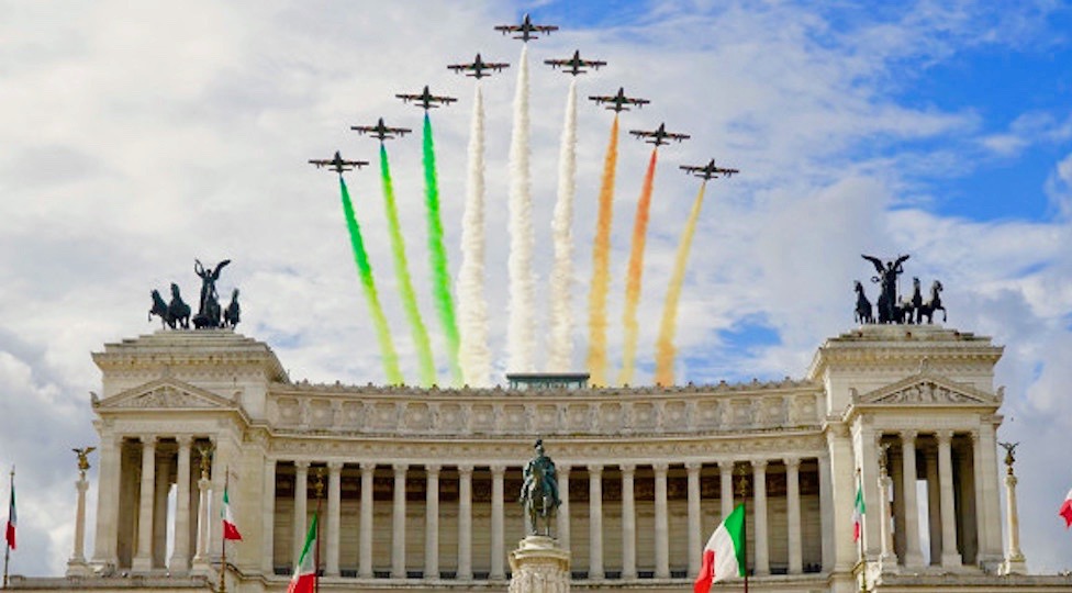 ROMA – Anche una calda giornata di sole estivo ha partecipato a Roma alle celebrazioni della Festa della Repubblica 2017, culminate con la parata militare lungo i Fori Imperiali, chiusa dall’Inno Nazionale cantato da Andrea Bocelli. Puntuali alle 9,22 di venerdì 2 giugno – al terzo ed ultimo squillo di tromba del «Silenzio» in memoria dei Caduti – sono apparse sul cielo dell’Altare della Patria le Frecce Tricolori. I velivoli della Pattuglia Acrobatica Nazionale hanno lasciato una lunga scia bianca, rossa e verde nel cielo di Roma. Per molti italiani è una consuetudine. Di quelle però a cui non ci si abitua mai e ogni volta è come fosse la prima.