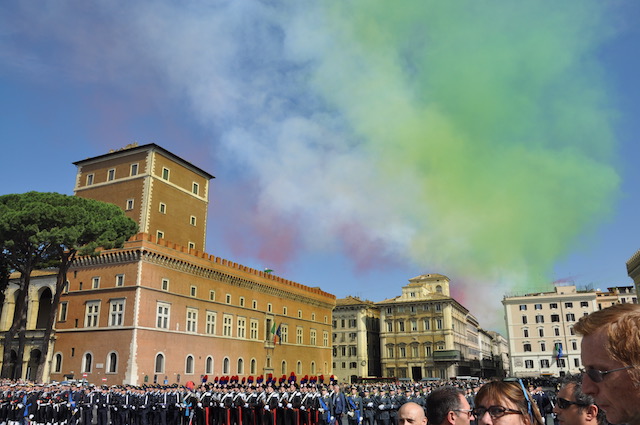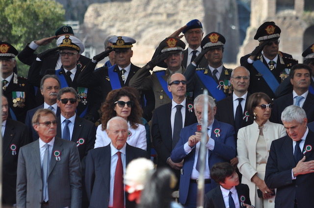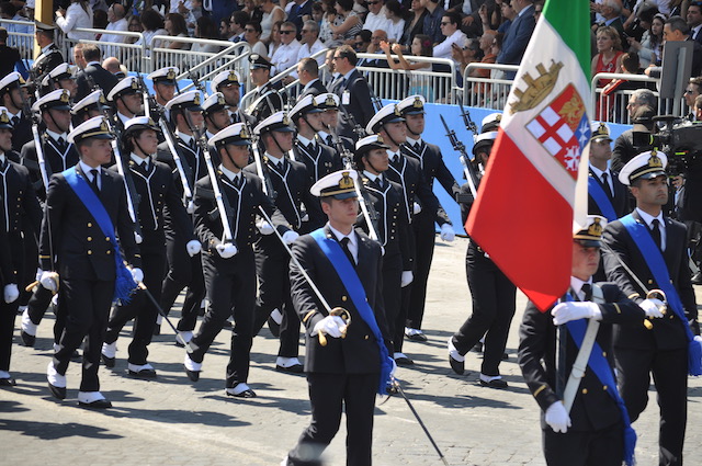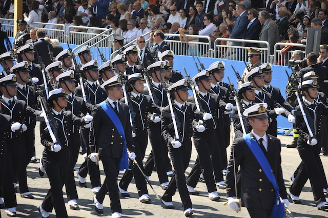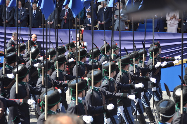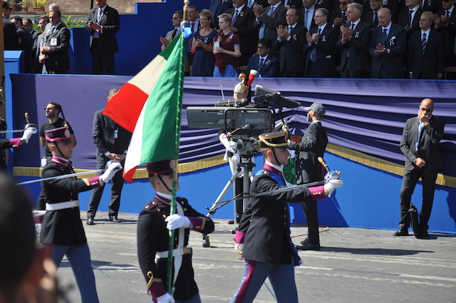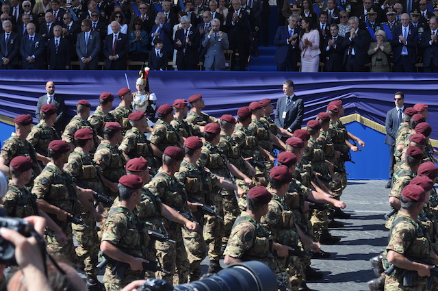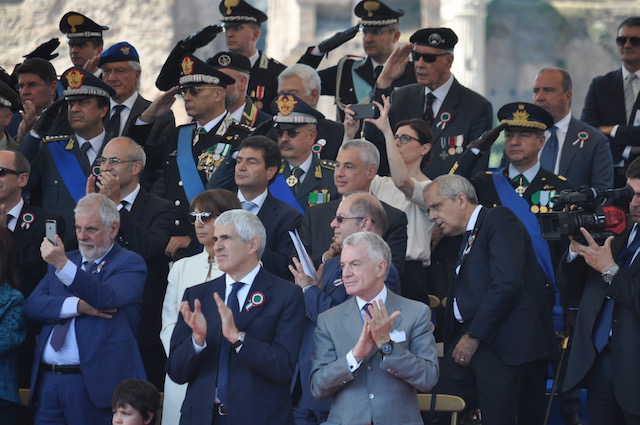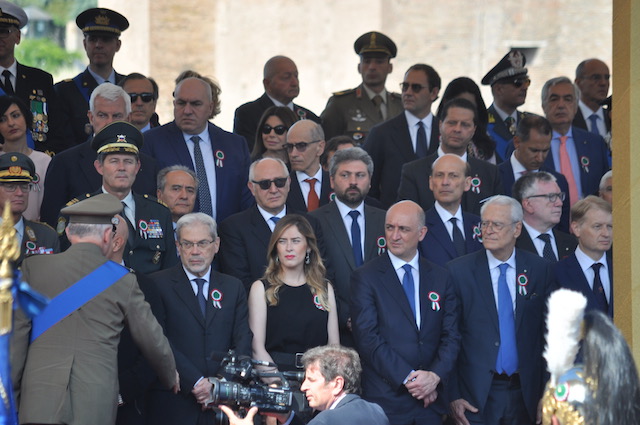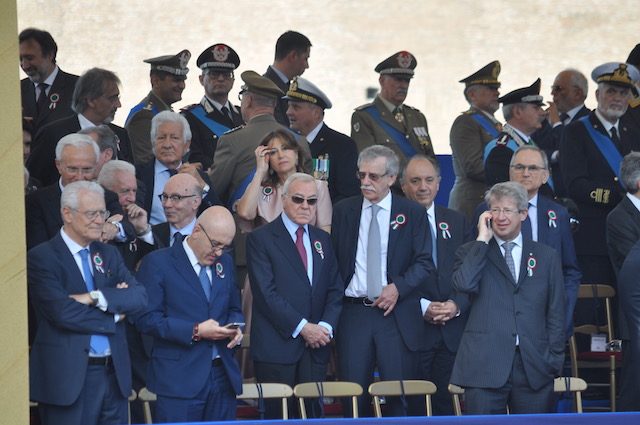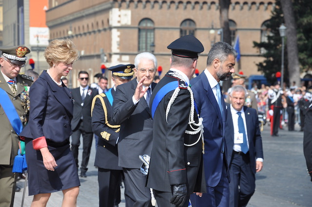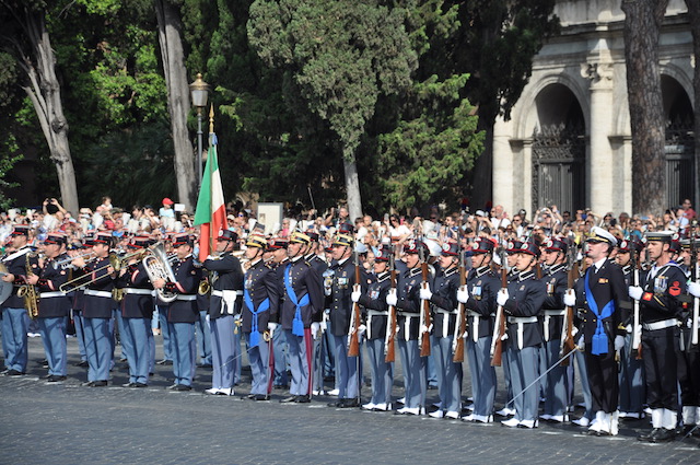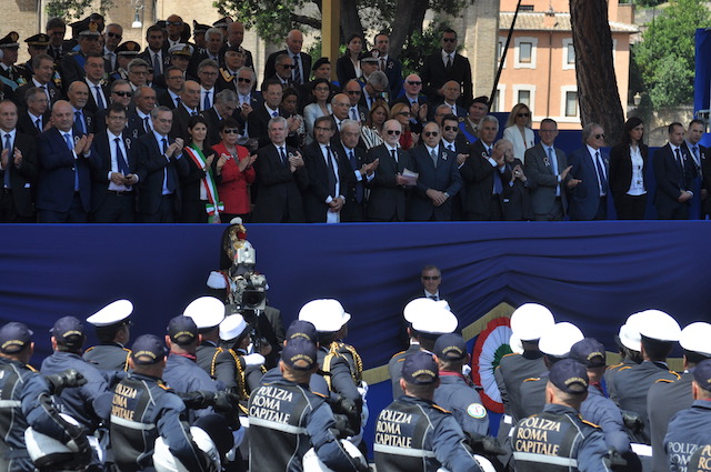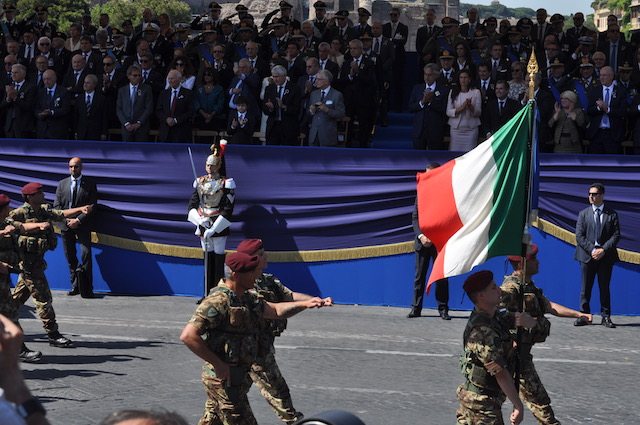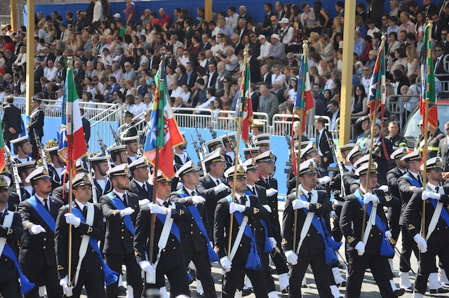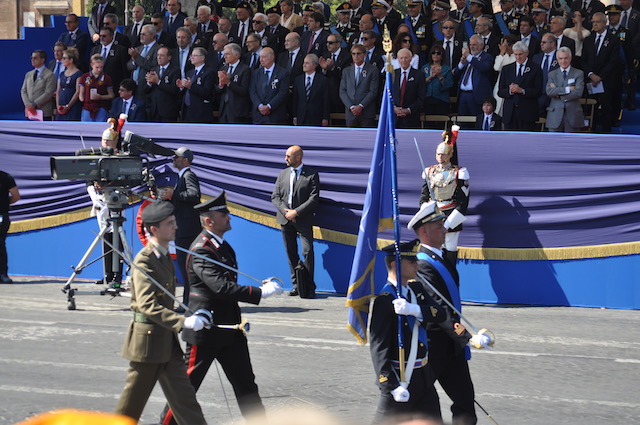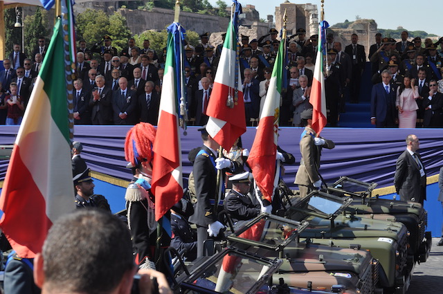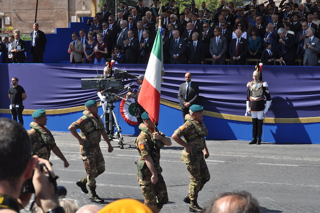 Come l’appuntamento lungo i Fori Imperiali con la parata militare, termine opportunamente dissimulato nei comunicati ufficiali, dove sparisce soprattutto l’aggettivo «militare» sinonimo per qualcuno di «Italia guerriera». Ma la parata (o rivista) degli uomini e donne in divisa c’è e non si può toglierle il proprio Dna. Non per niente è il ministro della Difesa e il capo di Stato Maggiore della Difesa che salgono a bordo dell’auto del Presidente della Repubblica per accompagnarlo alla cerimonia.