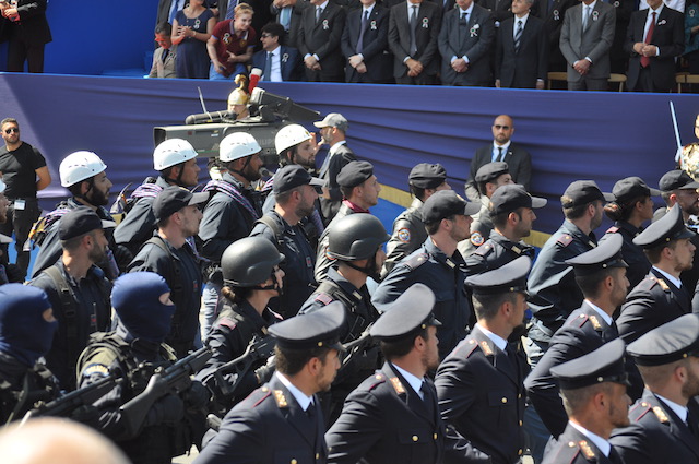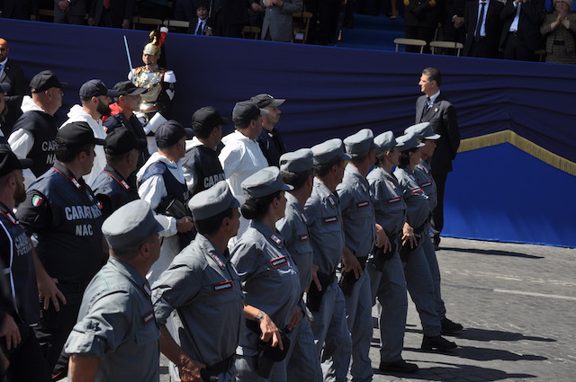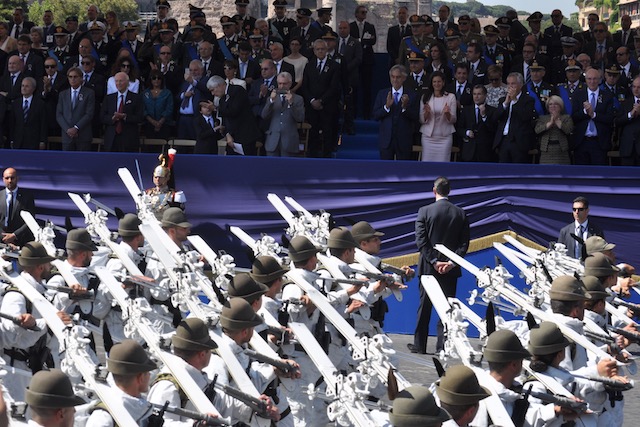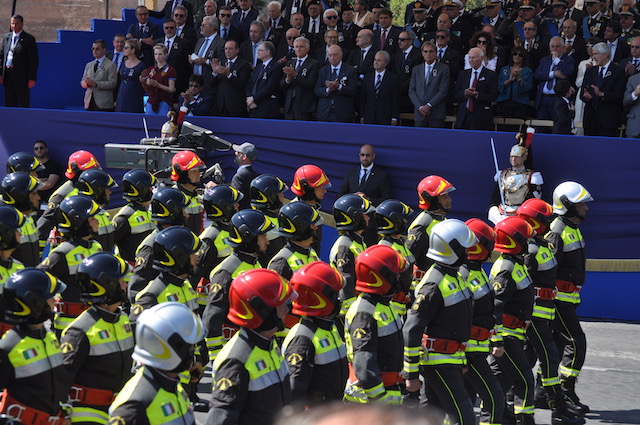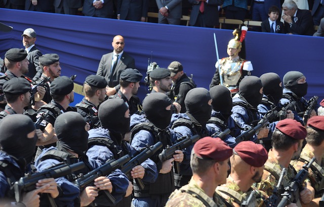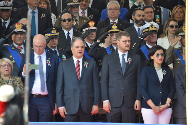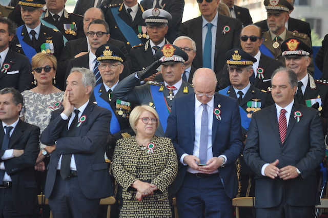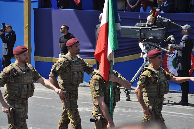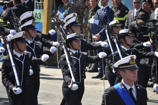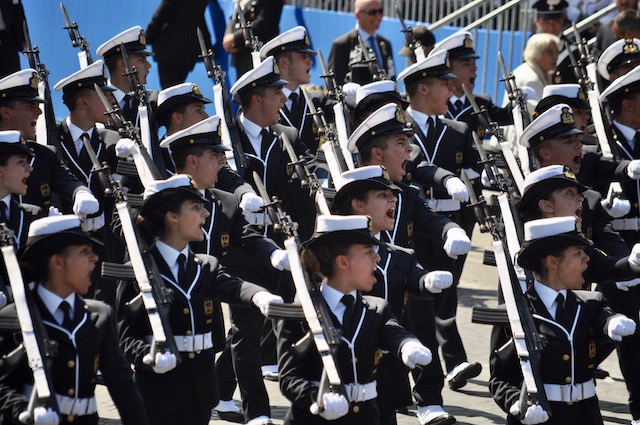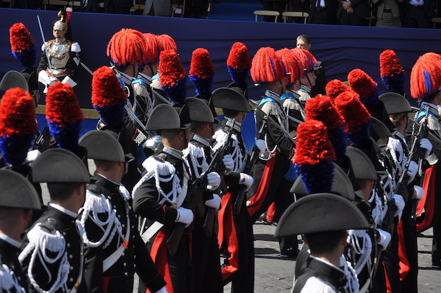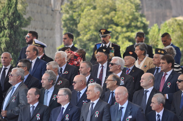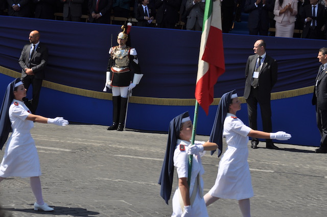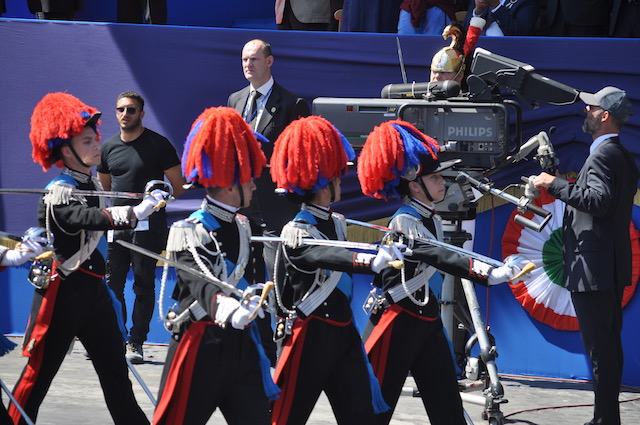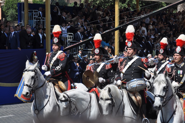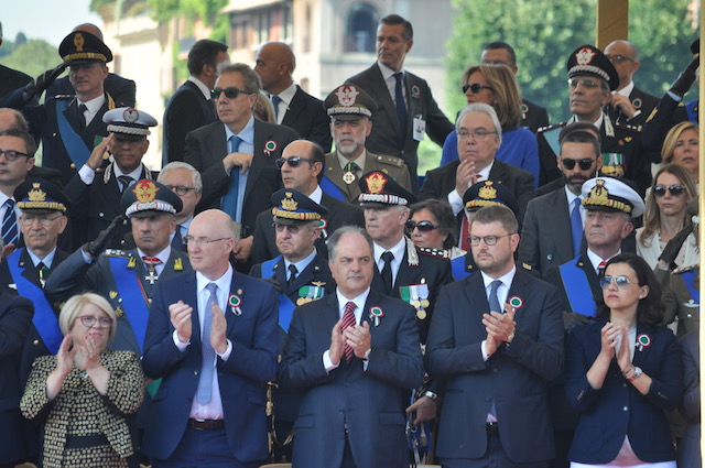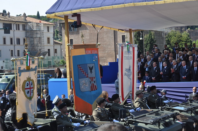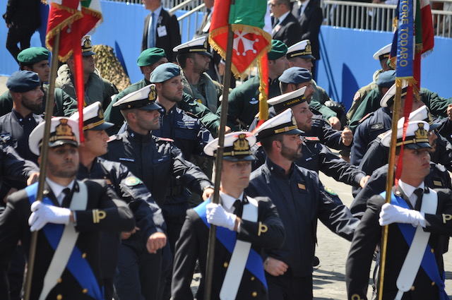Come l’appuntamento lungo i Fori Imperiali con la parata militare, termine opportunamente dissimulato nei comunicati ufficiali, dove sparisce soprattutto l’aggettivo «militare» sinonimo per qualcuno di «Italia guerriera». Ma la parata (o rivista) degli uomini e donne in divisa c’è e non si può toglierle il proprio Dna. Non per niente è il ministro della Difesa e il capo di Stato Maggiore della Difesa che salgono a bordo dell’auto del Presidente della Repubblica per accompagnarlo alla cerimonia.