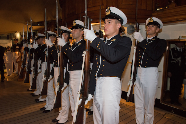 Al termine della visita, solenne e suggestivo ‘ammaina bandiera’ sul cassero davanti agli ufficiali, sottufficiali, truppa e naturalmente ai ‘cadetti’ dell’Accademia. Mancano tre mesi al ritorno di Nave Vespucci a Livorno (previsto per il 23 settembre). Per loro le emozioni sono solo all’inizio.