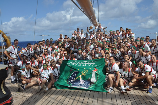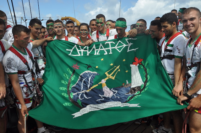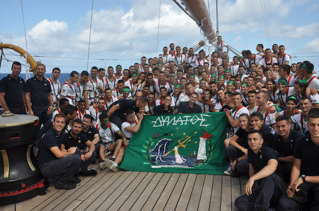 OCEANO ATLANTICO – Si chiama Dunatos, dal greco antico ‘forte e potente’, il nome del corso 2016-2017 dell’Accademia Navale di Livorno. Lo hanno scelto e gridato giovedì 31 agosto, davanti alle onde dell’Oceano Atlantico, i giovani allievi della prima classe a bordo della Nave Scuola Amerigo Vespucci. Da oggi la loro non sarà più una «classe» ma un «corso», con un nome che identificherà per sempre la loro appartenenza all’Accademia navale. Al loro rientro in Italia, il 23 settembre a Livorno, riceveranno l’agognato numero «2» del secondo anno da apporre sulla divisa. Non saranno più i «pivoli» di Accademia (le matricole) ma già gli «anziani», ai quali gli allievi del primo anno si dovranno rivolgere stando sugli attenti. Non è poco a vent’anni.