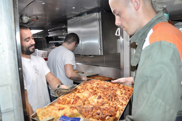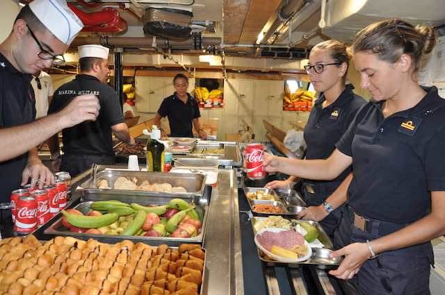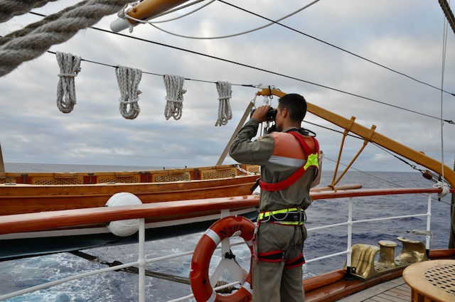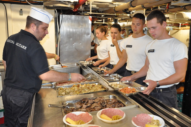 La vita a bordo è scandita da ritmi e programmi precisi, tanto per l’equipaggio che per i giovani cadetti dell’Accademia Navale che a bordo del Vespucci stanno ultimando la loro campagna d’istruzione 2017. Non c’è tempo per distrarsi, né sentire la solitudine in mezzo all’oceano. I turni di lavoro sui ponti esterni come sottocoperta sono impegnativi per tutti. Mediamente di tre-quattro ore, due volte al giorno per tre giorni. Il quarto solo due ore. Poi si ricomincia, giorno e notte. Dalla plancia al governo delle vele, dal sistema nave alle cucine, dalla formazione degli allievi dell’Accademia ai turni di guardia, tutto è una grande «macchina», umana e meccanica al tempo stesso, che funziona 24 ore su 24.