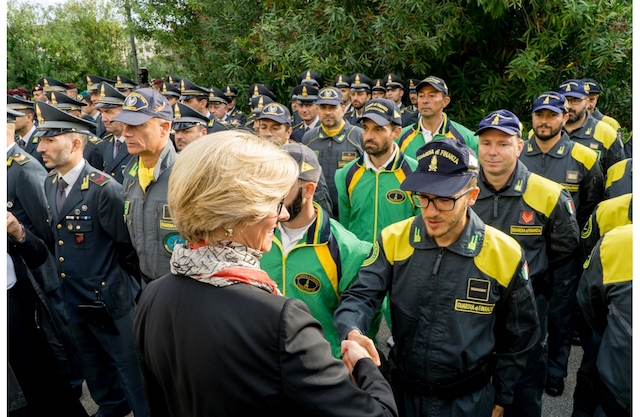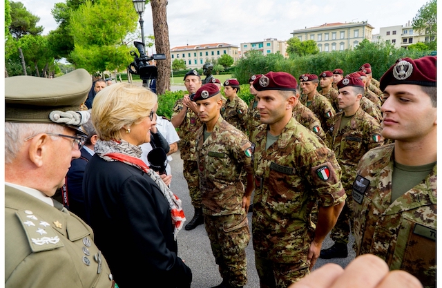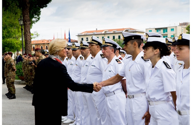 Dal molo Capitaneria il ministro Pinotti si trasferisce all’Accademia Navale, per un saluto alle autorità locali dopo la tragica alluvione del 10-11 settembre e per ringraziare personalmente gli uomini e donne in divisa per l’impegno messo a disposizione per fronteggiare l’emergenza di quei giorni. Nel viale dell’Accademia sono schierate rappresentanze di Paracadutisti della Brigata Folgore dell’Esercito, personale della Marina militare, Carabinieri della territoriale di Livorno e del Reggimento Paracadutisti Tuscania, Finanzieri del comando di Livorno e del Roan il reparto aero navale. Cosa ha detto il ministro.