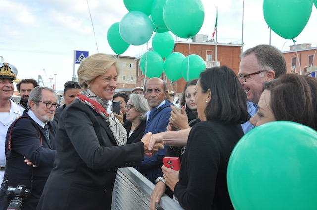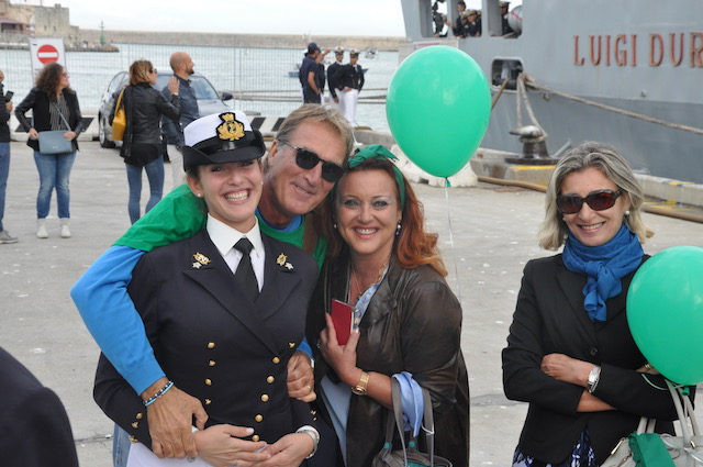 «Da oggi vedrete i vostri figli con occhi diversi» dice il ministro incontrando sulla banchina i familiari dei marinai. In particolare degli allievi del corso Dunatos, presenti con un grande striscione verde. «Hanno fatto un’esperienza importantissima, diventando molto più consapevoli della loro scelta, formando tra loro un gruppo ancora più coeso». Qui l’audio delle parole del ministro Pinotti.