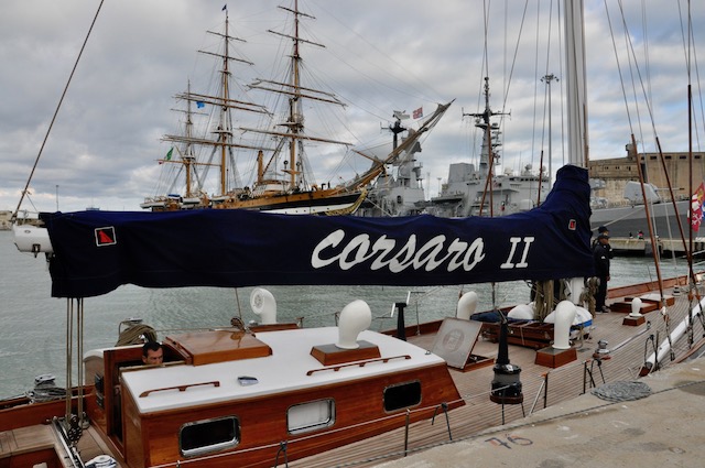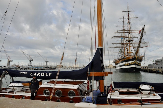 Dall’alba sulla banchina del molo Capitaneria ci sono i familiari di allievi e equipaggio ad attendere i «loro» marinai. C’è chi è arrivato alle cinque e mezzo per paura di fare tardi. Piano piano la banchina si riempie e già alle 7 ci sono almeno un centinaio di persone, arrivate da tutta Italia. All’ormeggio con il Vespucci ci sono altre unità utilizzate per attività di formazione marinaresca: il cacciatorpediniere Luigi Durand de la Penne, che per alcune settimane ha ospitato gli allievi che hanno concluso il 2° anno di Accademia (corso Ateires) e che ora hanno già il grado di «aspirante Guardiamarina», il primissimo livello di ufficiale. Poco distanti Nave Palinuro e le barche a vela Orsa Maggiore, Corsaro II e Caroly.