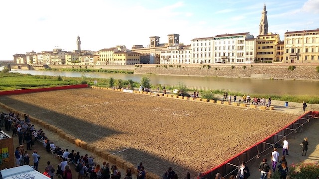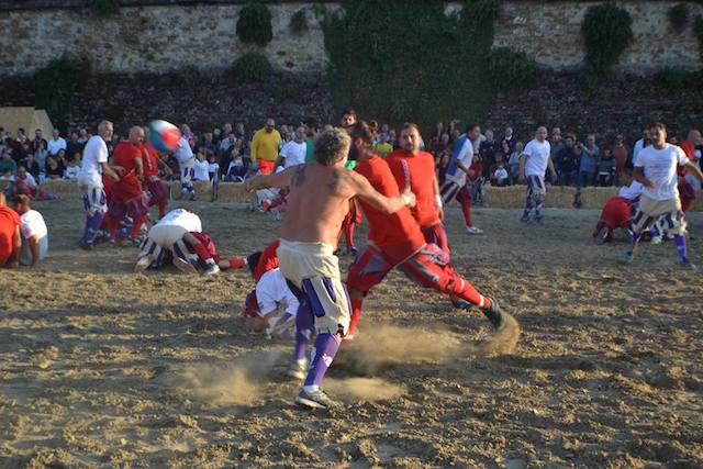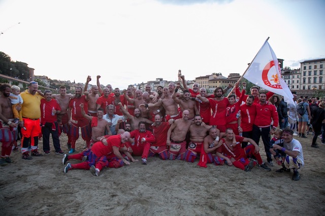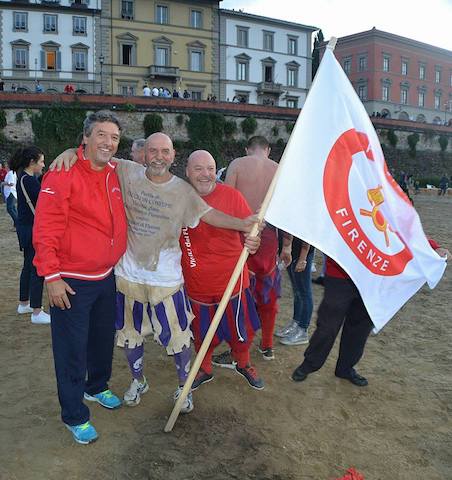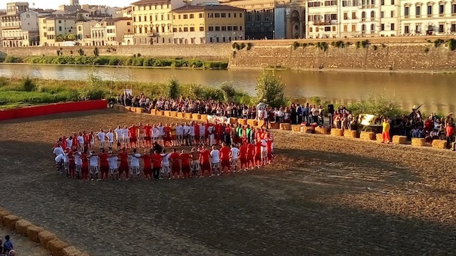 FIRENZE – Hanno vinto per 10 cacce a 4 le «Vecchie glorie del Calcio Storico» contro i Pompieri di Firenze. Ma il risultato non conta. Questo l’esito dell’incontro amichevole che si è svolto sabato 23 settembre in riva all’Arno sulla «spiaggina» di piazza Poggi. Lo stesso luogo dove venne giocata una storica partita il 10 gennaio 1490, con la differenza che in quell’occasione l’incontro si svolse sull’Arno ghiacciato, come raccontano le cronache del tempo.