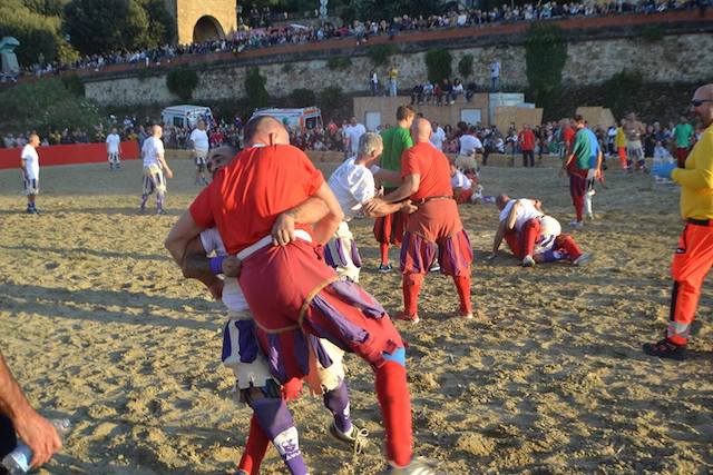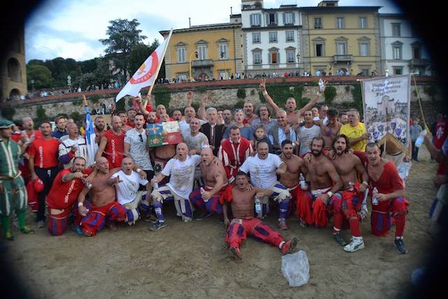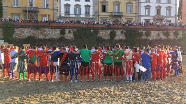 L’iniziativa, promossa a scopo benefico dall’Associazione Cinquanta Minuti in favore dell’Ant, ha visto una grande affluenza di pubblico e turisti, in particolare famiglie anche con bambini. Una gara divertente, assicurano i partecipanti, all’insegna della stima e del reciproco rispetto. Ventisette calcianti per squadra per 50 minuti di sfida sportiva. L’incontro è stato anche simbolicamente dedicato alla memoria di Daniele Pucci, un vigile del fuoco del Comando di Firenze, scomparso prematuramente il 9 settembre a soli 43 anni.