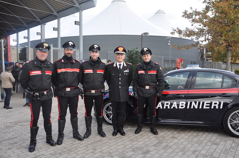 Nella hall del teatro era allestito tra l’altro uno stand dei carabinieri-forestali, la nuova specialità di «polizia ambientale» nata dall’accorparmento tra Arma e Corpo Forestale dello Stato dal 1 gennaio 2017. Non potevano mancare i cani del Centro Cinofili di Castello (tra cui gli addestratissimi molecolari Gandalf e Druido) ma anche – e per qualcuno soprattutto – gli automezzi veloci dei Carabinieri. Dalle motociclette del pronto intervento alle gazzelle del 112.