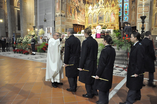 FIRENZE – L’Aeronautica Militare ha ricordato a Firenze la Madonna di Loreto, patrona dell’Arma azzurra. Una cerimonia religiosa si è svolta martedì 12 dicembre nella basilica di Santa Croce, alla quale è voluto intervenire il cardinale arcivescovo di Firenze Giuseppe Betori. Erano presenti i militari del quadro permanente dell’Istituto di Scienze Militari Aeronautiche (l’ex Scuola di Guerra Aerea che nel 2018 compirà 80 anni dalla sua fondazione) nonché quelli della Scuola Militare Aeronautica Giulio Douhet. Presenti anche i giovani allievi del coro della stessa Douhet.