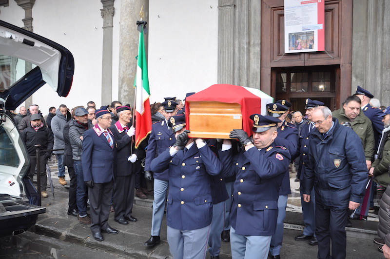 Autorità a parte, la partecipazione più impressionante è stata quella di centinaia di colleghi, di ogni specialità della polizia arrivati anche da fuori Firenze, che si sono voluti stringere nel ricordo di un amico speciale «che non doveva morire così». Molte le persone in lacrime anche alla camera ardente, allestita in mattinata era stata allestita in questura. Ma c’era anche chi ammetteva di non riuscire neppure a piangere, per un blocco emotivo troppo forte. Come nel caso della signora Mariella Magi, la vedova dell’agente delle Volanti Fausto Dionisi ucciso dai terroristi nel 1978.